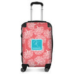 The coral background in this design is absolutely beautiful. The square label highlights the personalization of an initial and name of your choice in the stunning teal blue color.