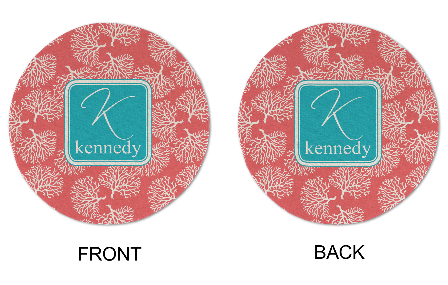 The coral background in this design is absolutely beautiful. The square label highlights the personalization of an initial and name of your choice in the stunning teal blue color.