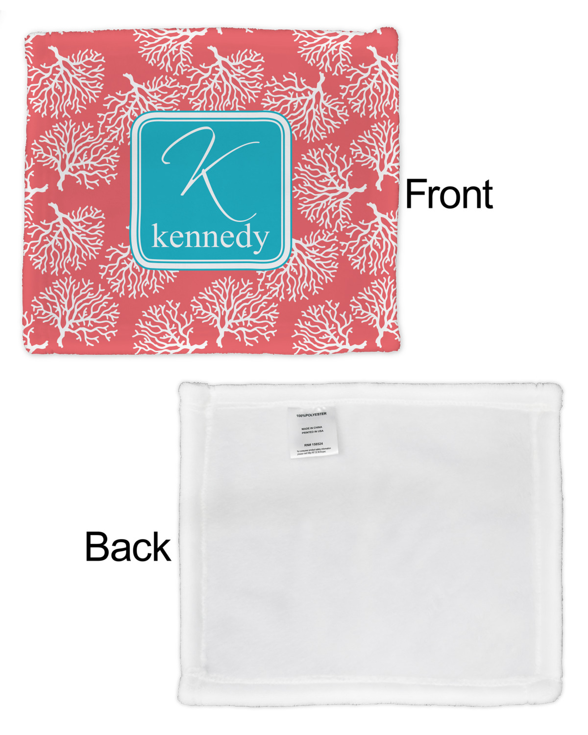 Crafted from an ultra soft fleece, these lovey blankets are the perfect, portable size to follow your child on any of his or her adventures. The plush texture also makes them ideal for naptime. Each personalized baby blanket measures at approximately 12 by 11 inches.