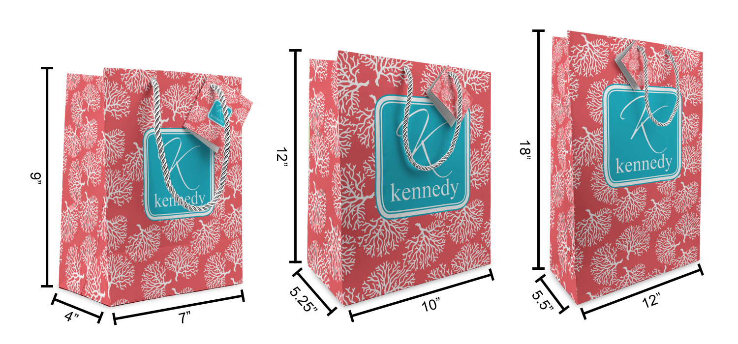 These custom gift bags come in your choice of 3 sizes. Their dimensions are below: