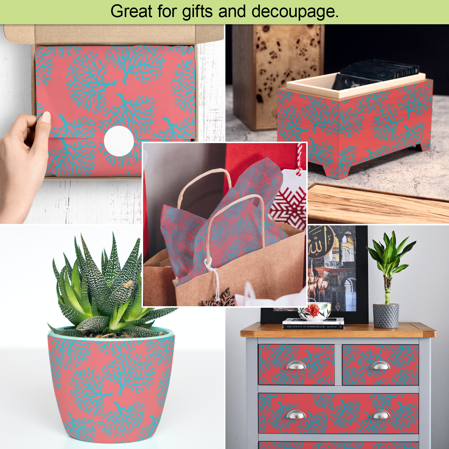 Our tissue paper sheets are also perfect for decoupage i.e. the art of gluing paper on ordinary objects to decorate them.