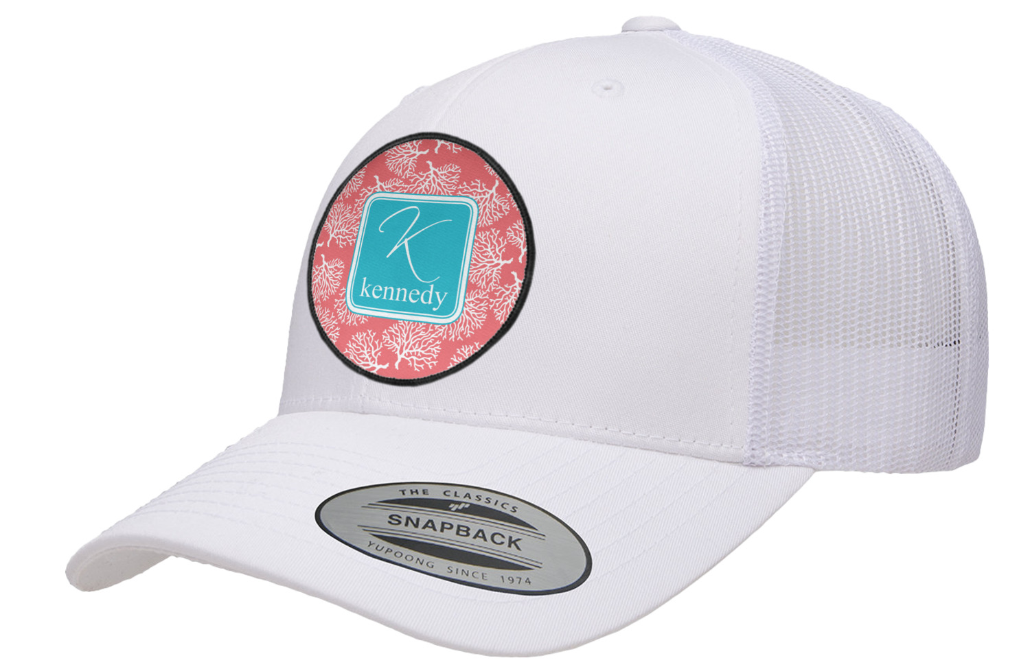 The coral background in this design is absolutely beautiful. The square label highlights the personalization of an initial and name of your choice in the stunning teal blue color.