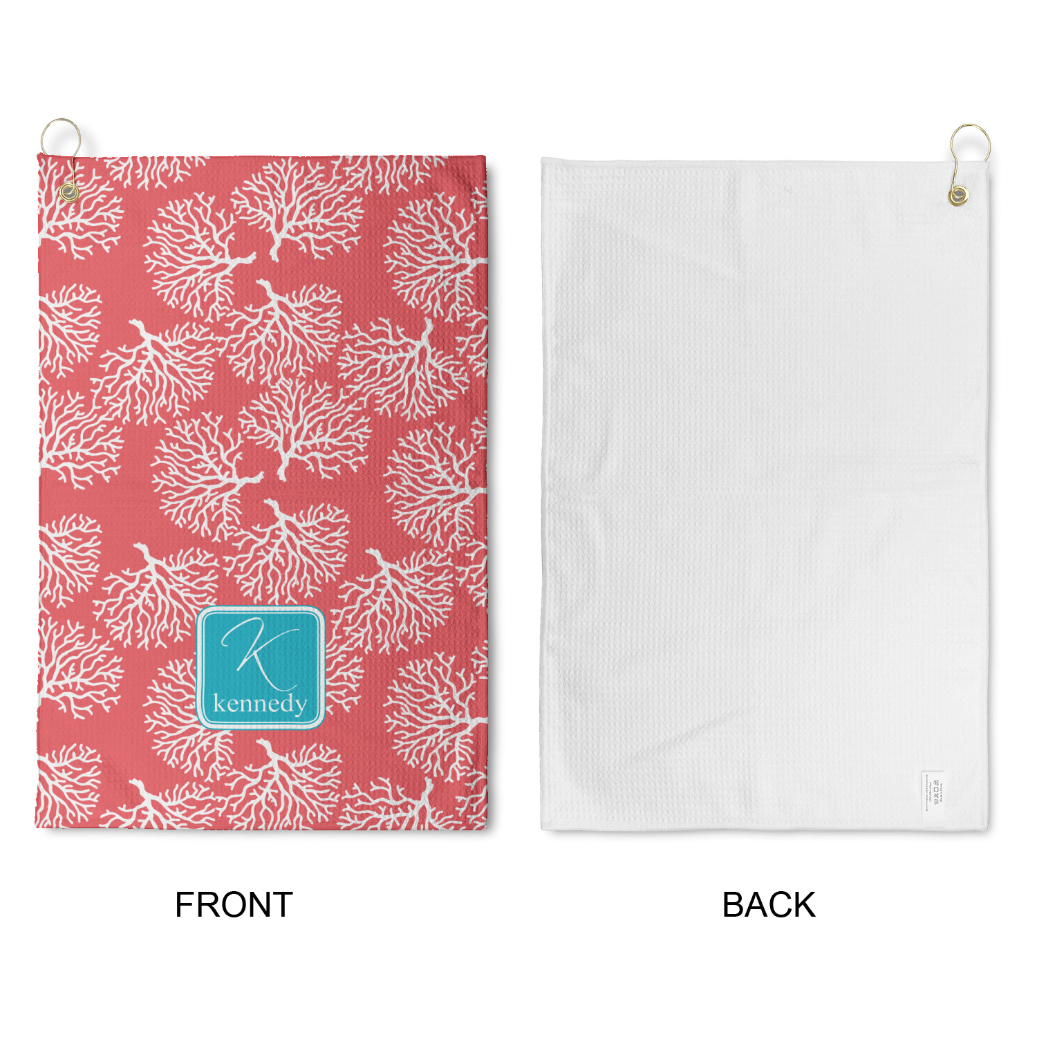 Measuring approximately 16in wide and 24in tall these towels are the perfect size for your golf bag or on your cart. The waffle weave texture makes a great texture for cleaning clubs, balls and anything else you need to clean during your golf game.