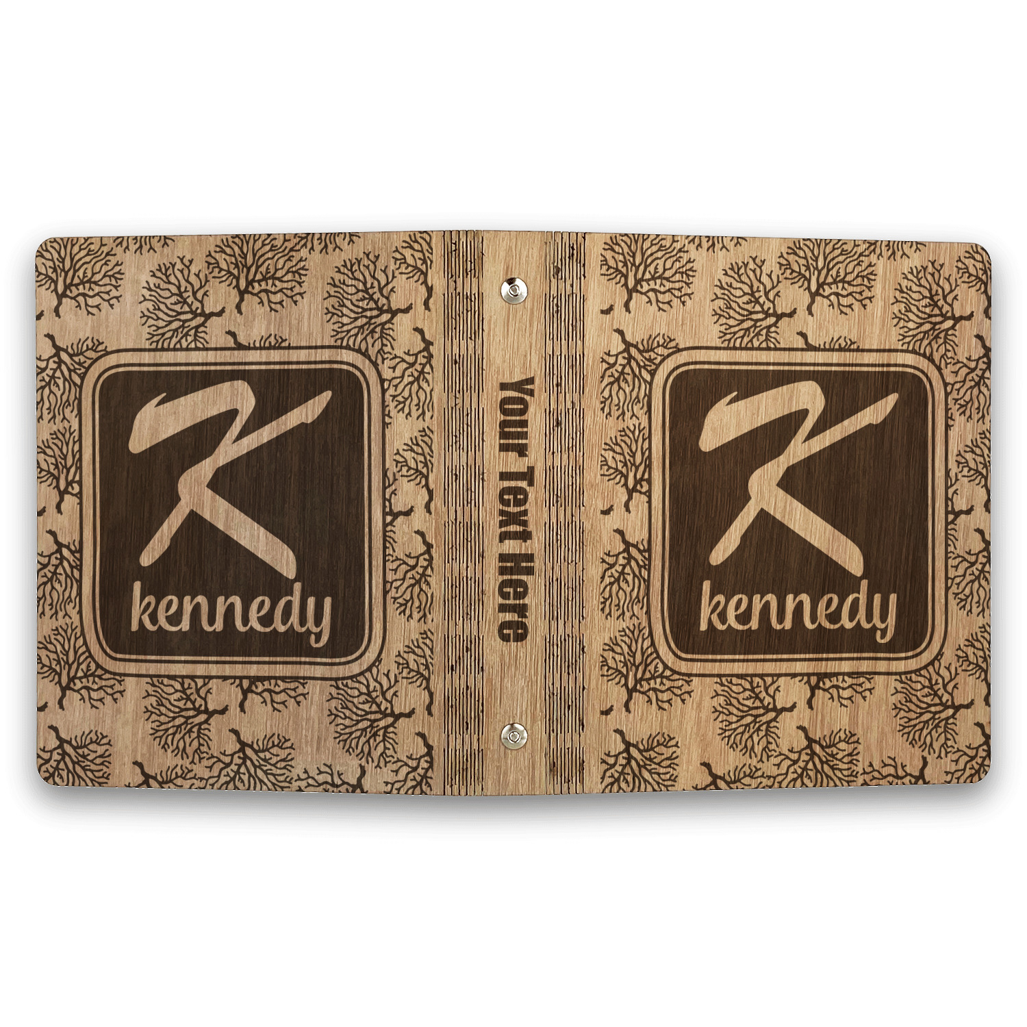 Made from premium hardwood, these are laser engraved then polished with wax to give a nice sheen and smooth feel to the product. The inside of the binders are finished with a faux leather material which is bonded to the inside of the wood to strengthen the wood and give the inside the same refined finish. The rustic brown and gold leather material adds a nice classic touch to the binders.