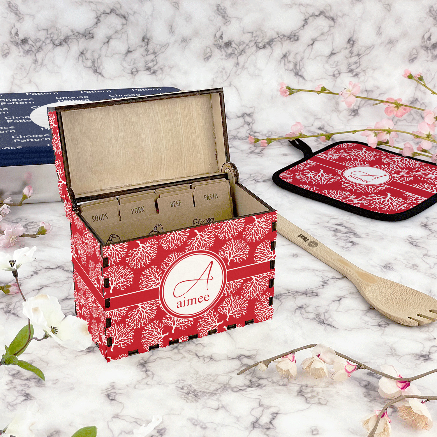 For a classic look for your kitchen counter to hold all of your family heirloom recipes look no further than this full color printed wood recipe box. These recipe boxes are sure to add a nice custom touch to your kitchen and allow you to proudly display your treasured family recipes in a beautiful custom recipe box.