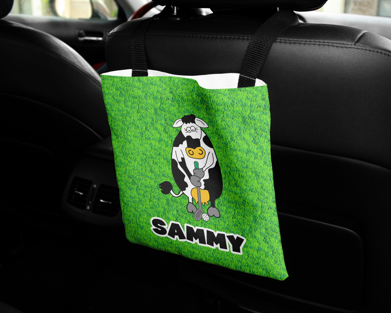 These car back seat organizers are sturdy tote-like bags, fabricated from a robust polyester, and features a single handle on the back side. The strap features an attachable velcro for easy attachment to headrests, grocery carts, car seats, and more. Simply undo the velcro, loop the strap around the headrest, reattach the velcro, and let the organizer hang from the front seat. These car organizers are the perfect means of increasing your backseat's legroom, while storing multiple items in one place for better accessibility. Each car back seat organizer measures at 10 by 10 inches, and features your personalized design printed across its front and back.