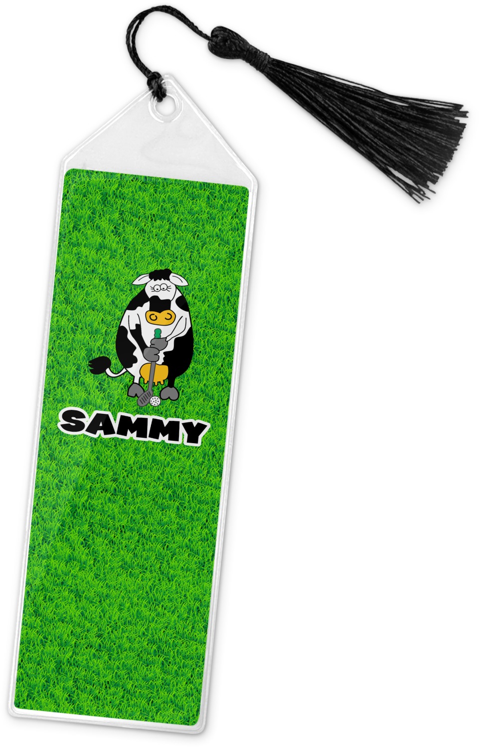 Your personalized bookmark is made of a sturdy, clear vinyl, and is approximately 7.5" x 2.25". We display your personalization on vinyl inserts that are placed on both sides. Accompanying each book marker is a black, fringe tassel that attaches to the reinforced, triangular header.