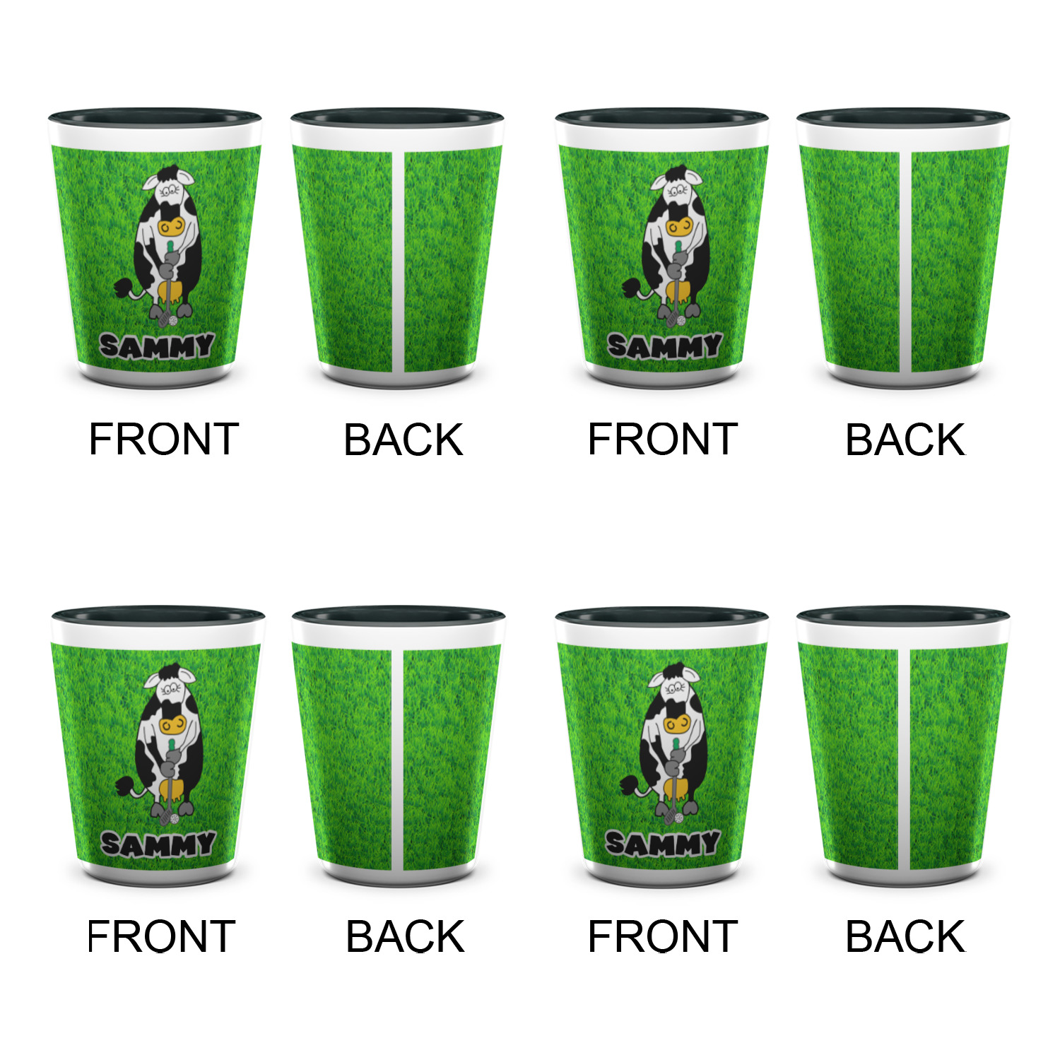 Made from ceramic these shot glasses are printed in full color with the design of your choice. These are a standard 1.5oz size and stand 2.25" tall. Available in a full white ceramic or a two-tone with a black color inside the shot glass. Buy a single or a set of 4, all of which can be designed separately to get you just what you want and need.