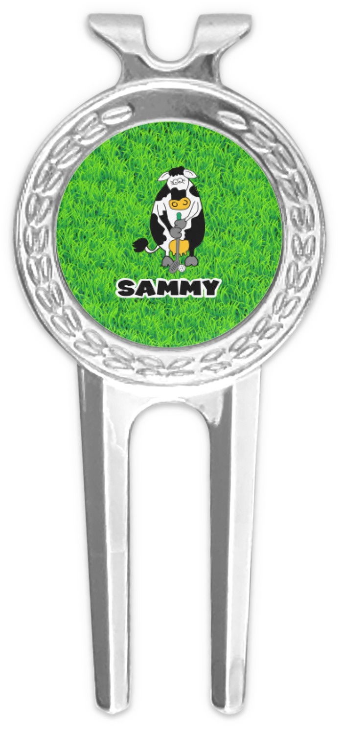This great little stainless steel divot tool is two-pronged and is approximately 3.25" x 1.5". The two prongs make is a breeze to fix any divots. There is a golf ball shaped place on the back of your tool where your thumb can sit in order to do this easily.