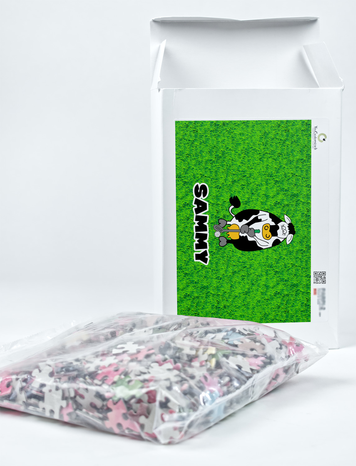 You can also upload your logo or art that you or your kids drew. To create more challenging jigsaw puzzles, you can create a pattern from with your logo or artwork. You can also add other elements such as text or personalization.