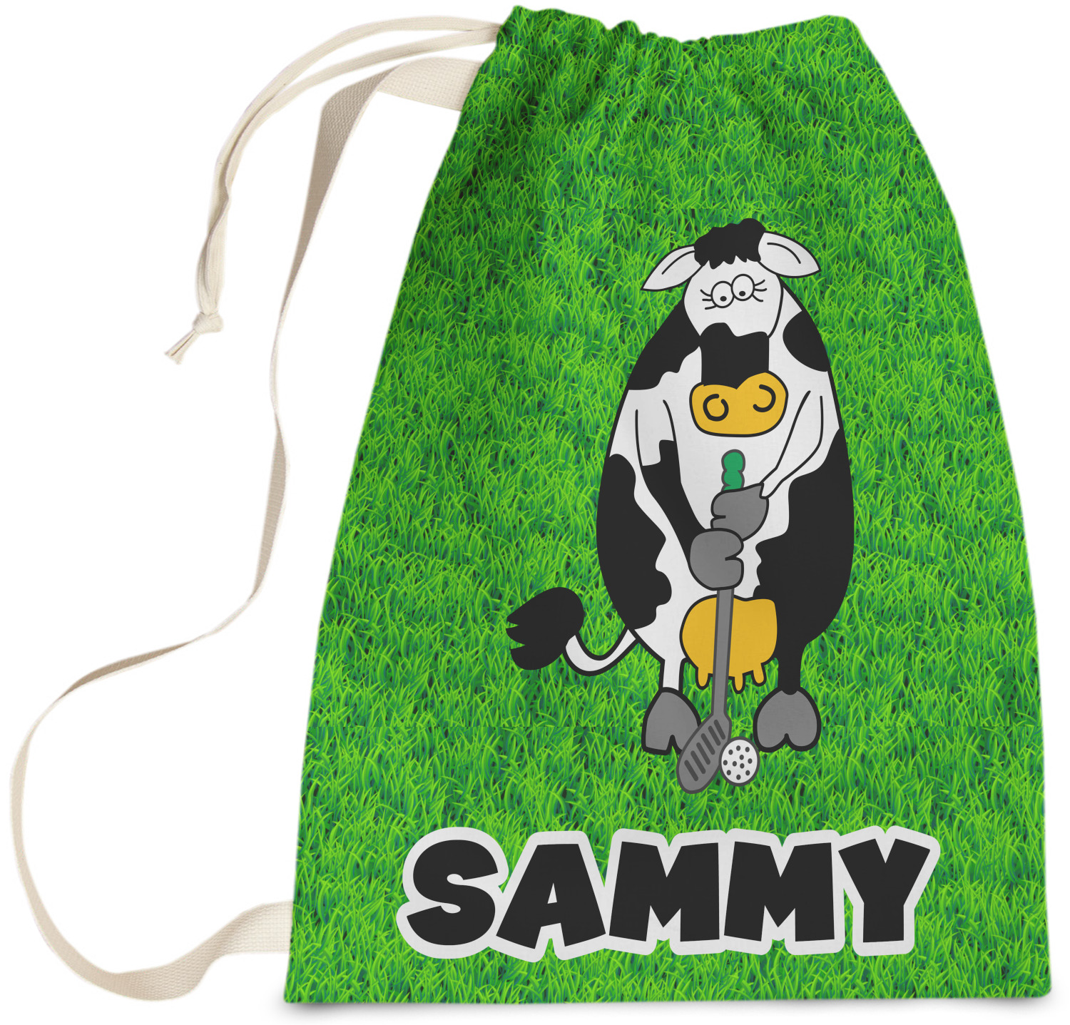Carry your laundry in style with these customized laundry bags. Available in two sizes, featuring a natural colored woven strap and a cinch cord, these bags hold a lot of clothes or anything else you want to fit in them.