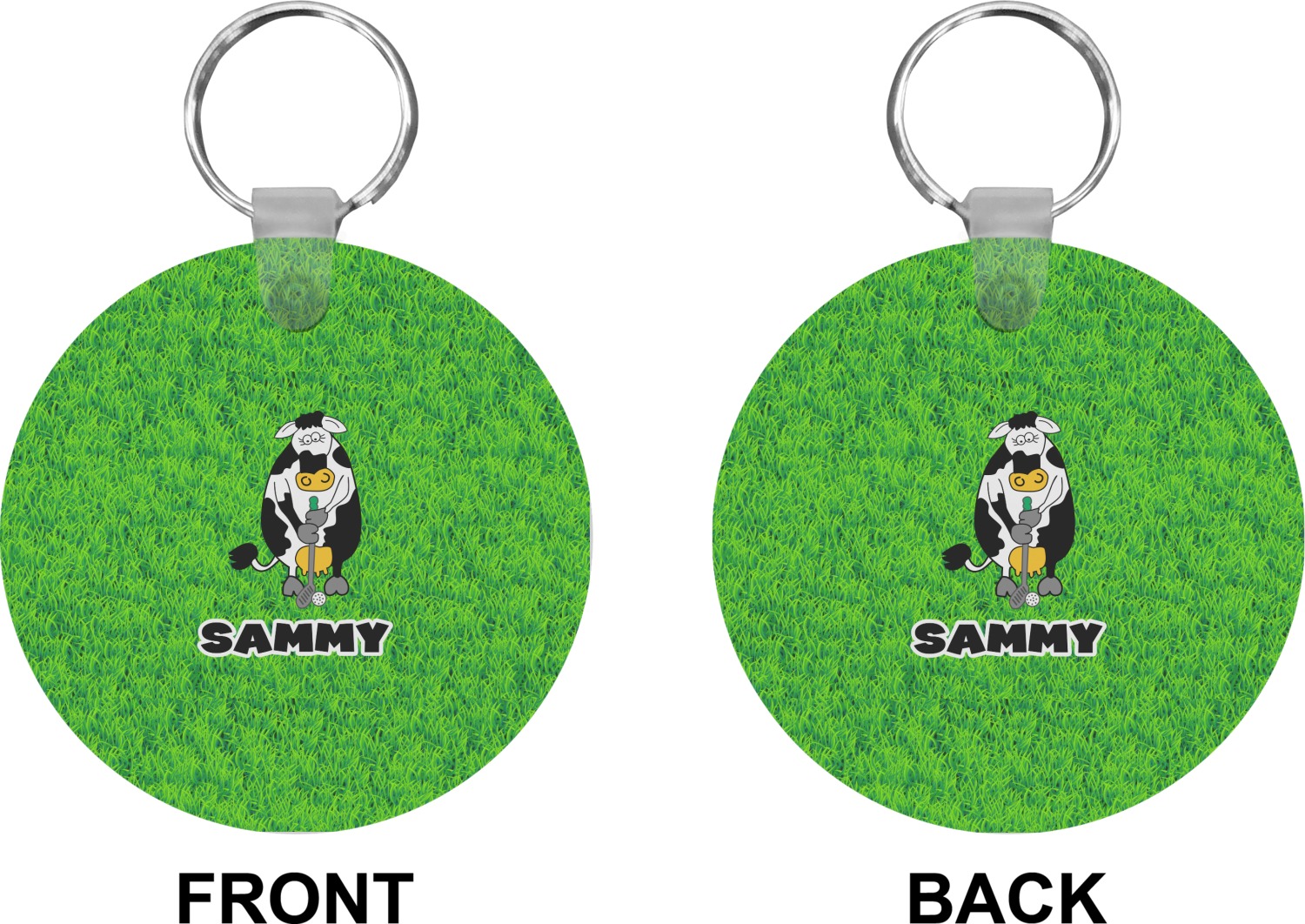 Our personalized keychains attach to the included metal, split key ring with a plastic, removable snap. Since a metal ring is included with your purchase, you have the liberty to keep your keys together on the ring, with or without your unique keychain. We offer this keychain in three different shapes: circle, heart, or diamond. We print your personalized design(s) on both sides of the key chain, and the surface has a glossy, reflective finish that only emphasizes your design. Each keychain is approximately 2.25 by 2.25 inches.
