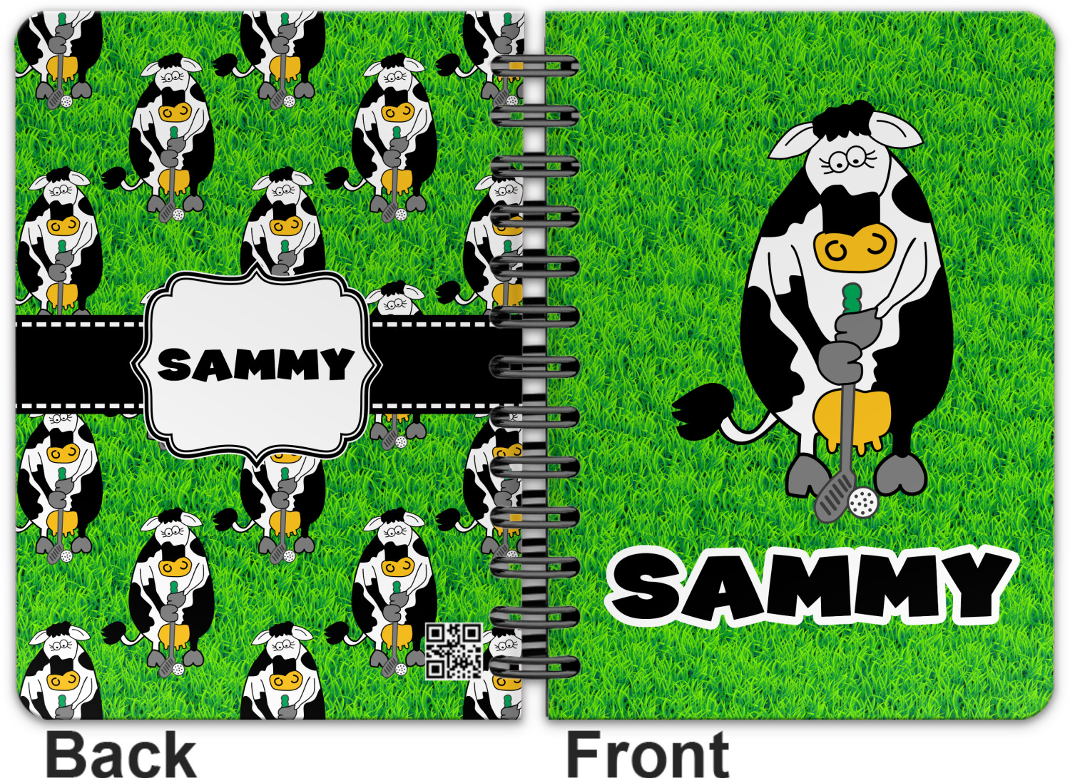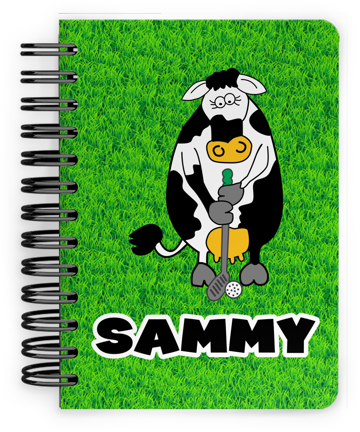 This spiral notebook includes 75 sheets of thick, ruled paper. The front and back of this custom notebook is made of a robust, laminate, plastic covering. We print your personalization on these two panels, underneath a glossy finish, which emphasizes the colors of your design. The two panels and the sheets of paper are held together by a sturdy, black coil. The paper within your bound notebook is perforated for easy, clean tearing.