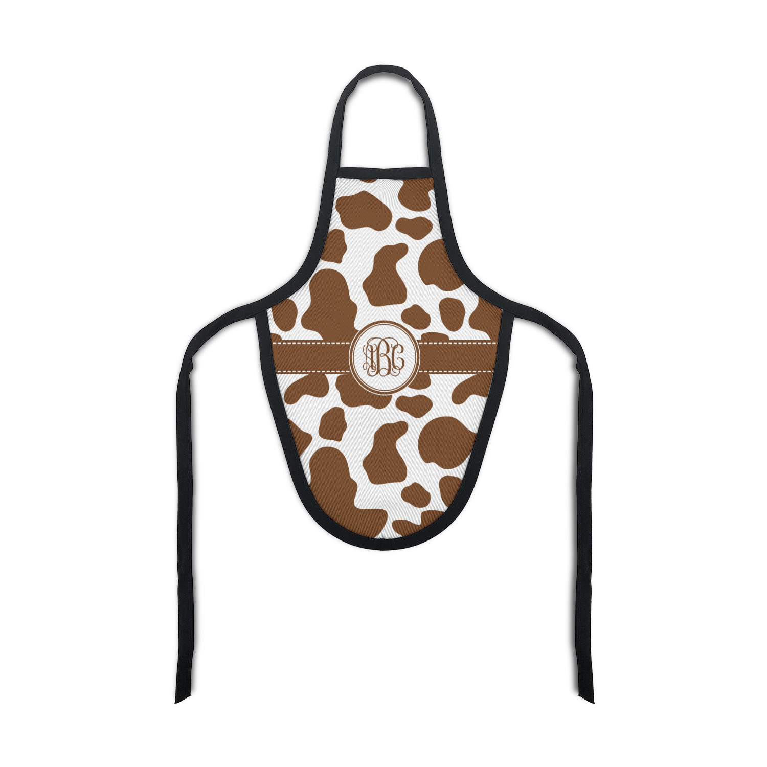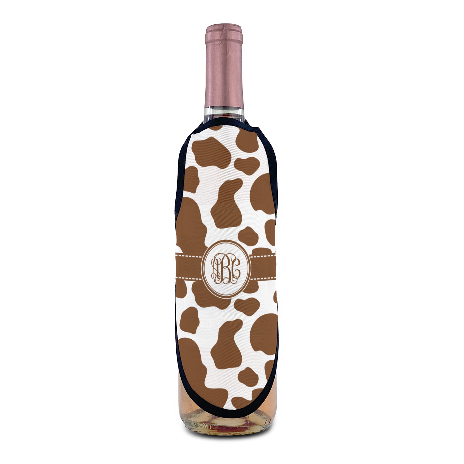 Made from a polyester fabric with black trim and tie string, these bottle aprons fit most large sized bottles including wine bottles, liquor bottles and dish soap bottles. With an included sliding cord lock the neck is adjustable to make these be a universal fit for most any sized bottle. The printed space of the apron measures approximately 8.5" tall and at its widest point the printed area is 6" wide.