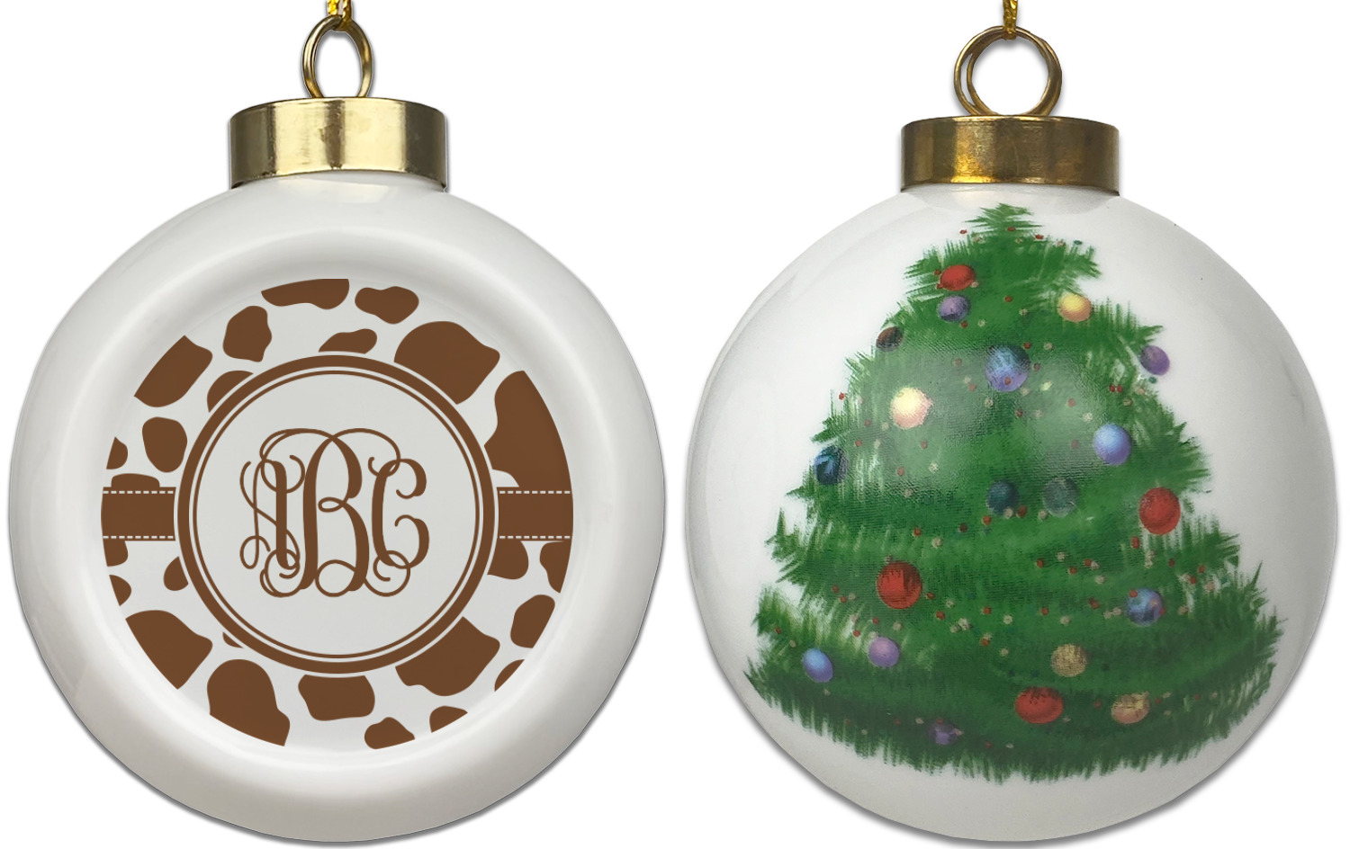 Our Christmas ornaments are a unique ceramic ball shape with a twist as it has a flat face to display your custom design! Select from one of our two design types - Christmas Tree or Poinsettia Garland - to adorn the curved back of your personal design. Each ornament measures 3H x 2.5W x 2D accompanied with a gold string accent for finishing touches to hang on your beautiful Christmas tree!
