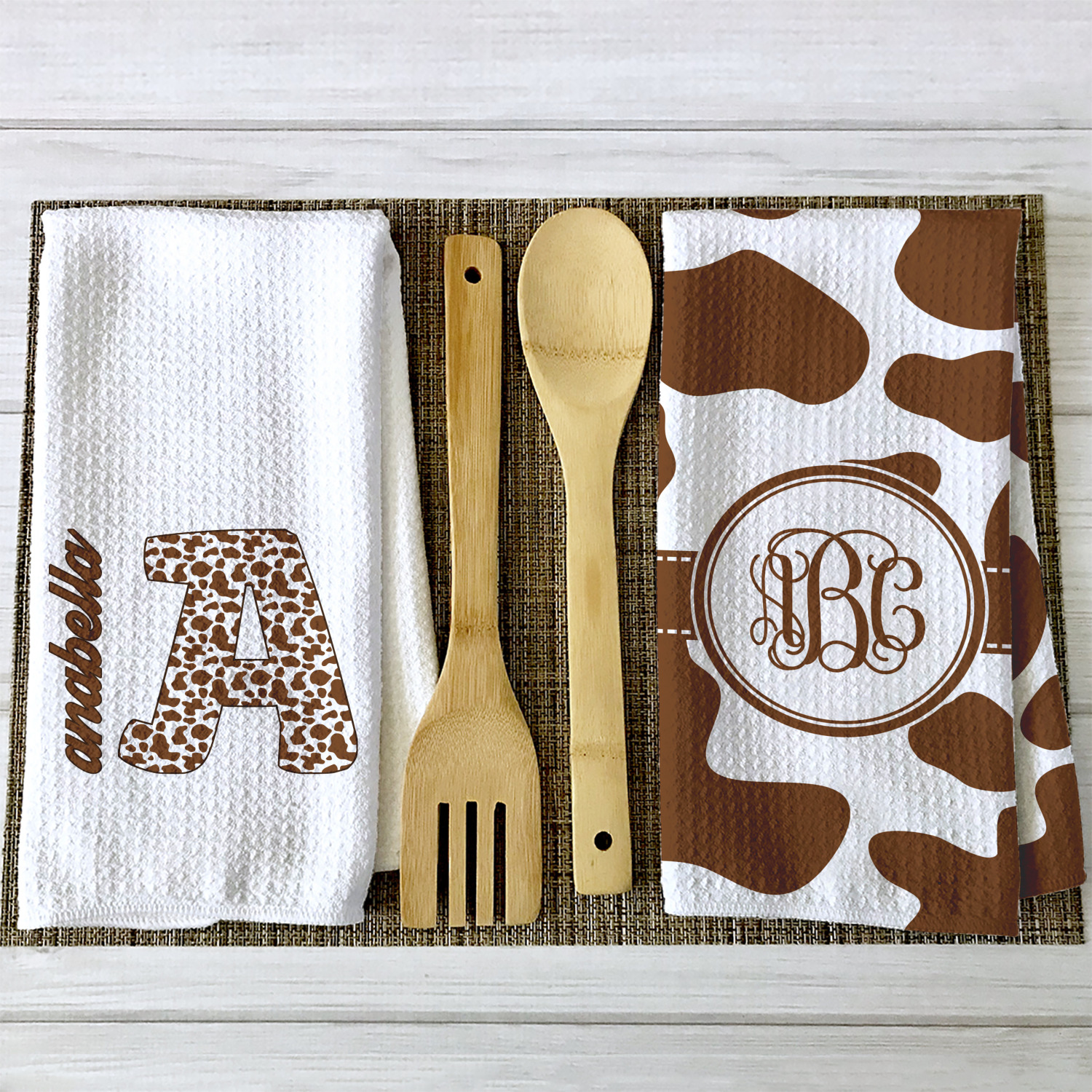 These towels have a fresh and modern look. They feel crisp, clean, light and airy - especially the partial print when customized with kitchen quotes & personalization in solid black color; thus giving the towels a classic black & white look!