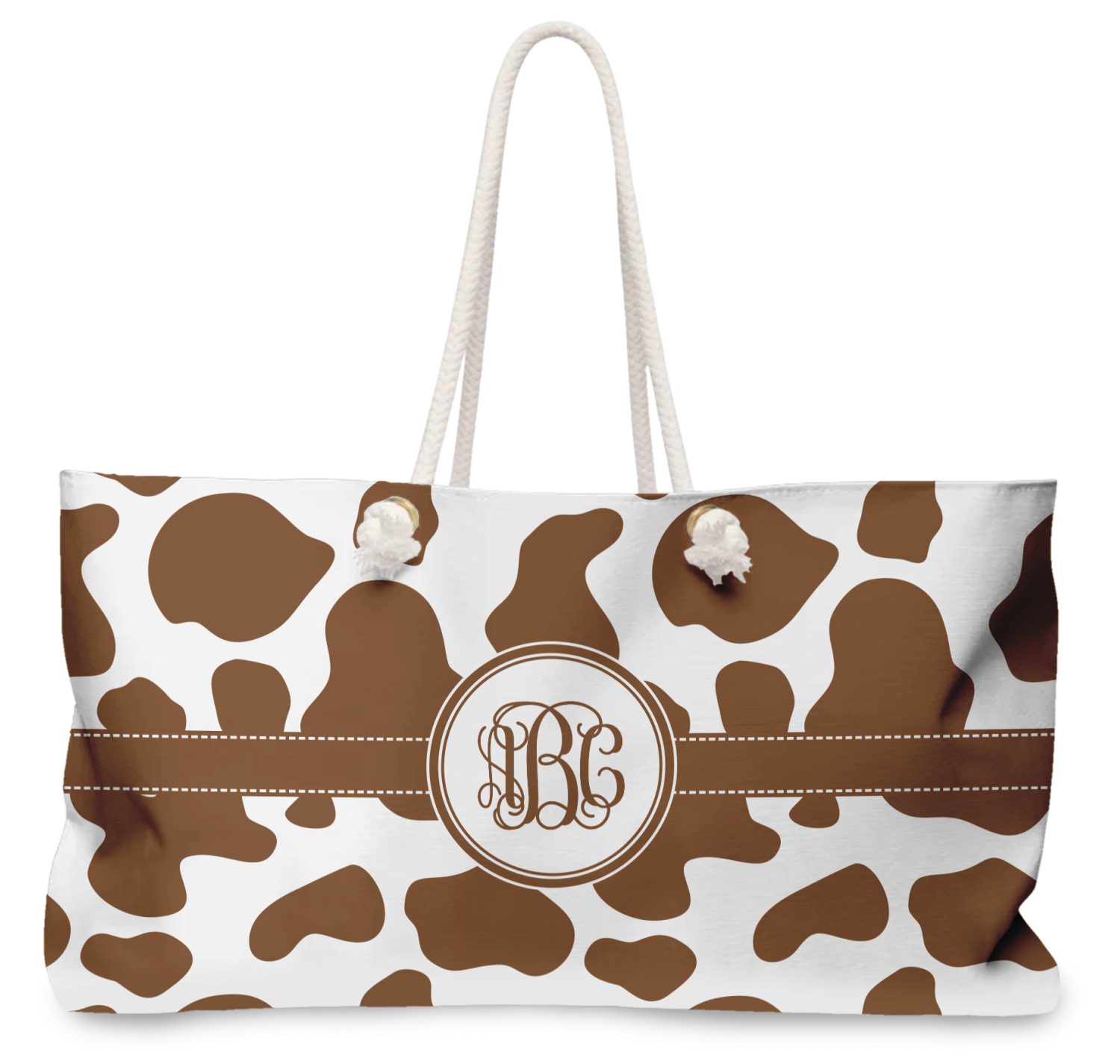 Our oversized weekender tote with rope handles is perfect for your weekend at the beach or on the town. This large tote are 24" W X 13" H, with a 5" gusset and a 27" thick rope handles with a knot that is put through a grommeted brass hole.