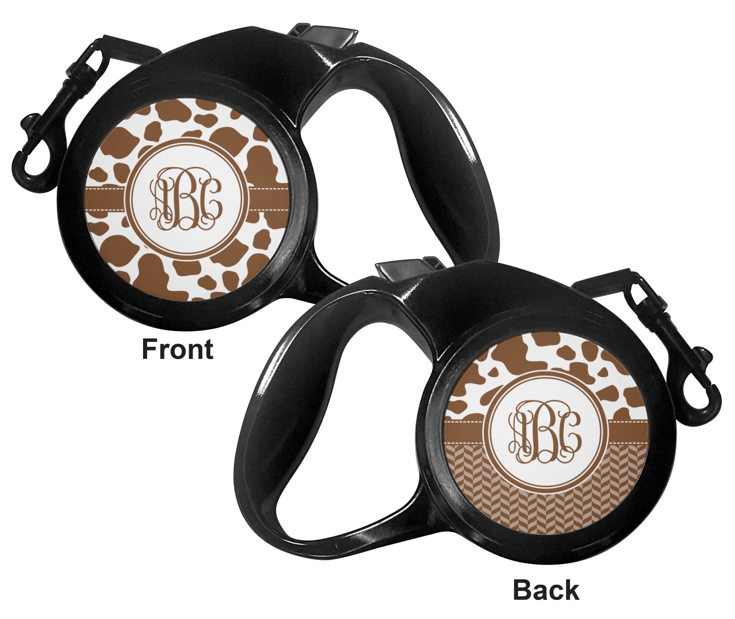 The leash's plastic handle is accommodating of your grip and displays your customization on both sides. The dog leash also features the traditional bolt snap clip, for easy fastening to your dog's collar. The leash and leash handle themselves are both black in color.