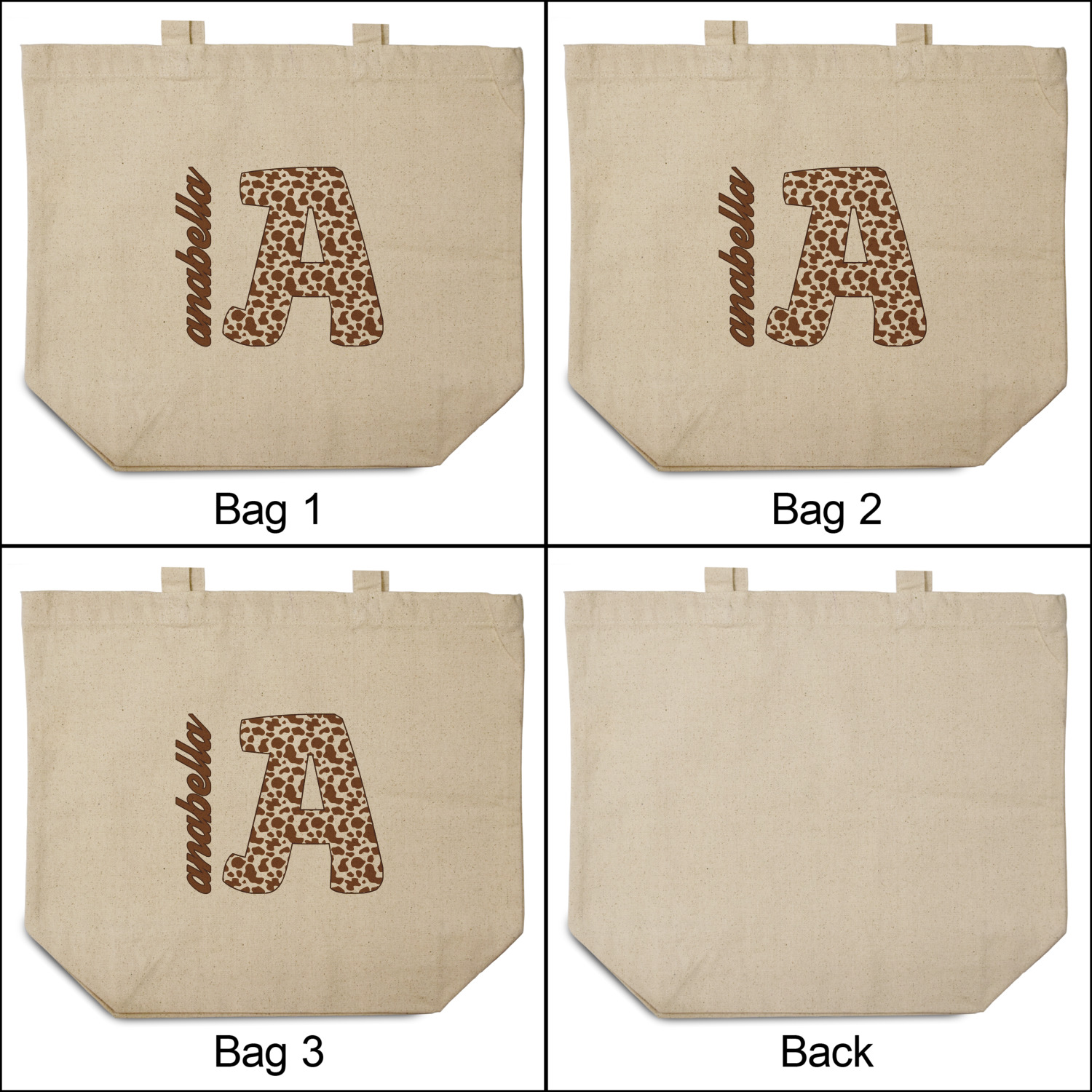 These cotton totes are washable and easy to care for, and they can be folded flat for storage. Your artwork, logo, or photo is printed in full color directly on the cotton tote in the front.
