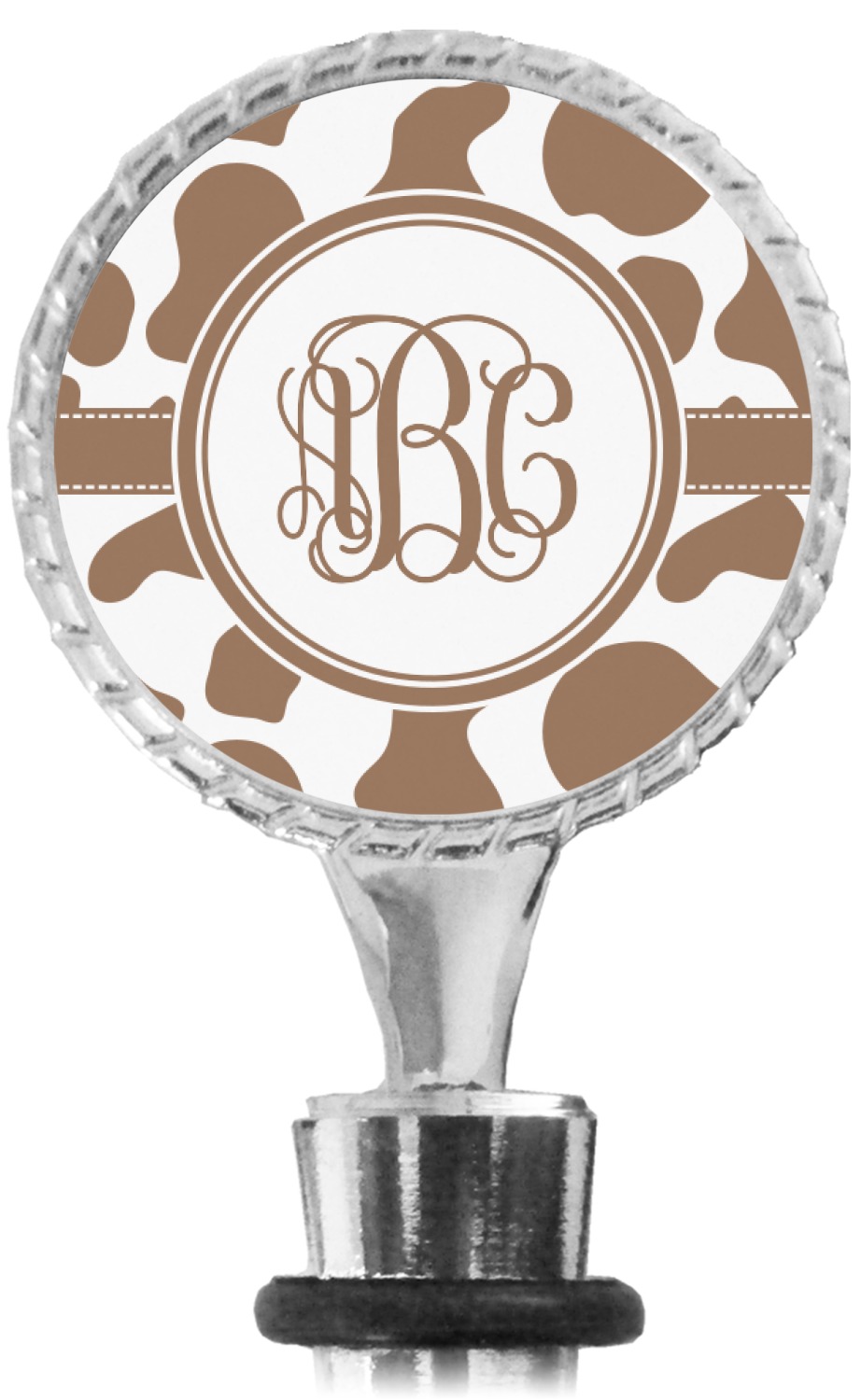 The top part of your bottle stopper is comprised of a zinc ring that displays your customization(s) in its middle, on both sides. The ring is heavy duty, with a bright chrome finish. The body of the wine stoppers have two silicone rings to provide an airtight seal. These wine bottle stoppers measure at 1.625" L x 0.8125" W x 4.625" H; your custom wine stopper is meant to fit into most standard-sized wine bottles.