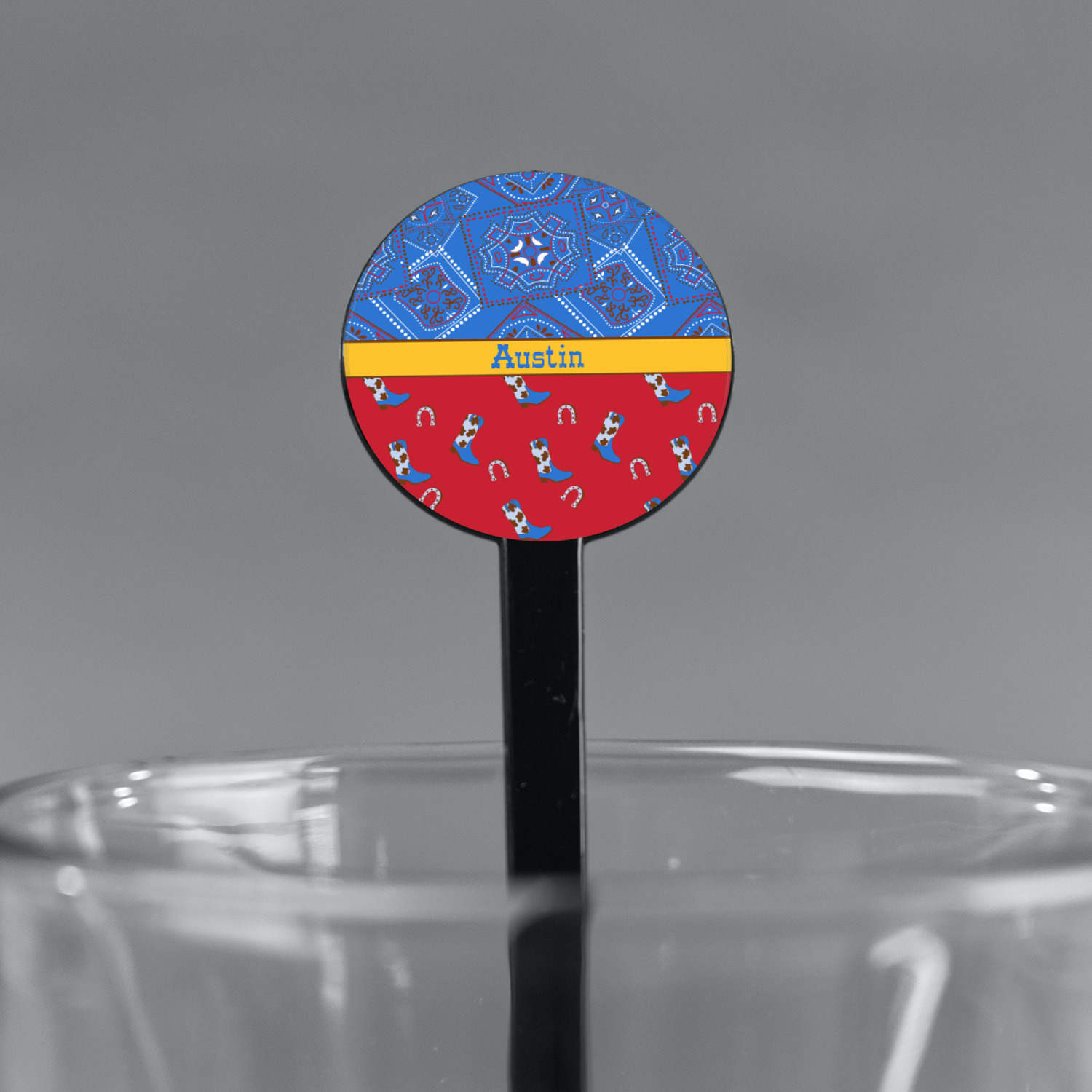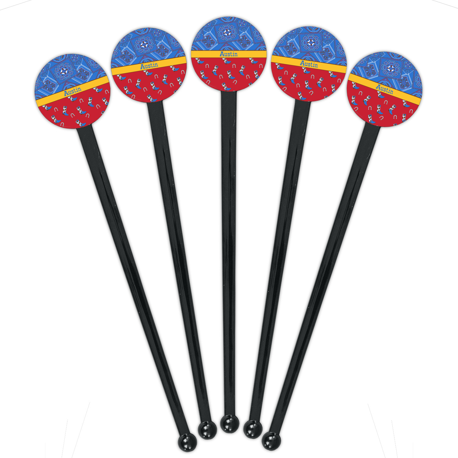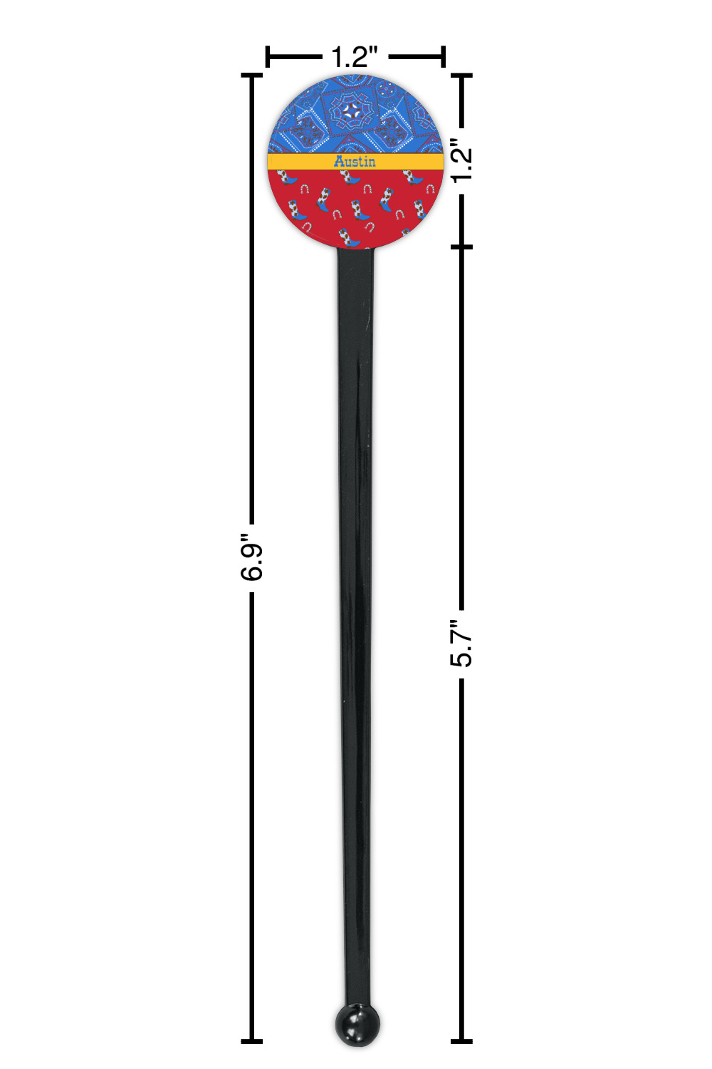 Horseshoe Designs for 7" Round Plastic Stir Sticks - Black - Single-Sided
