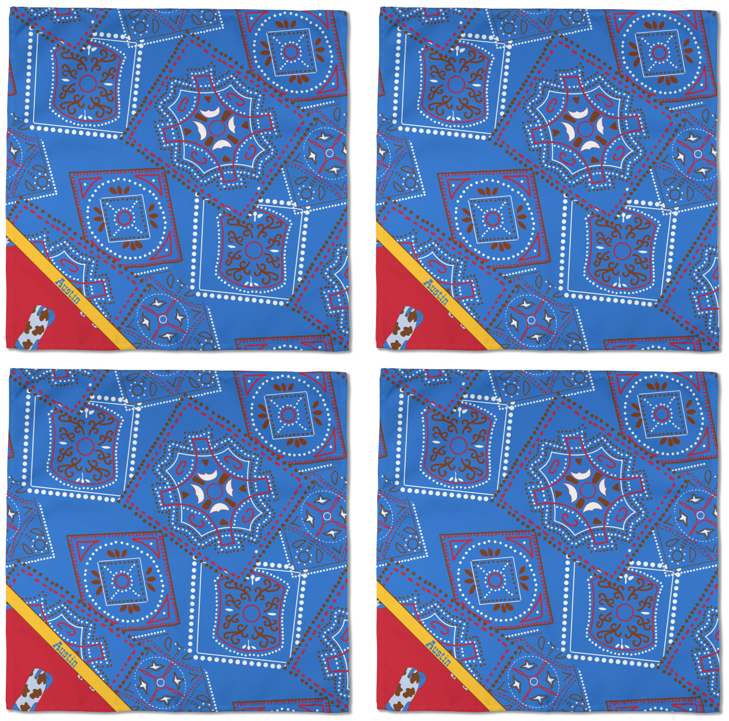 Each customizable cloth napkin is a polyester material guaranteed for long-term use. Since our napkins are cloth, it serves as a great reusable and eco-friendly dining decor. We sell personalized napkins individually or as a set of 4! Print your own unique design on all four napkins, or create four individual designs for each napkin! We offer two different napkin sizes - Cocktail napkins (approx. 10 x 10) and Dinner napkins (approx. 20 x 20). We print your design on one side, perfect for displaying your custom designed lunch napkins in any fold or table setting!