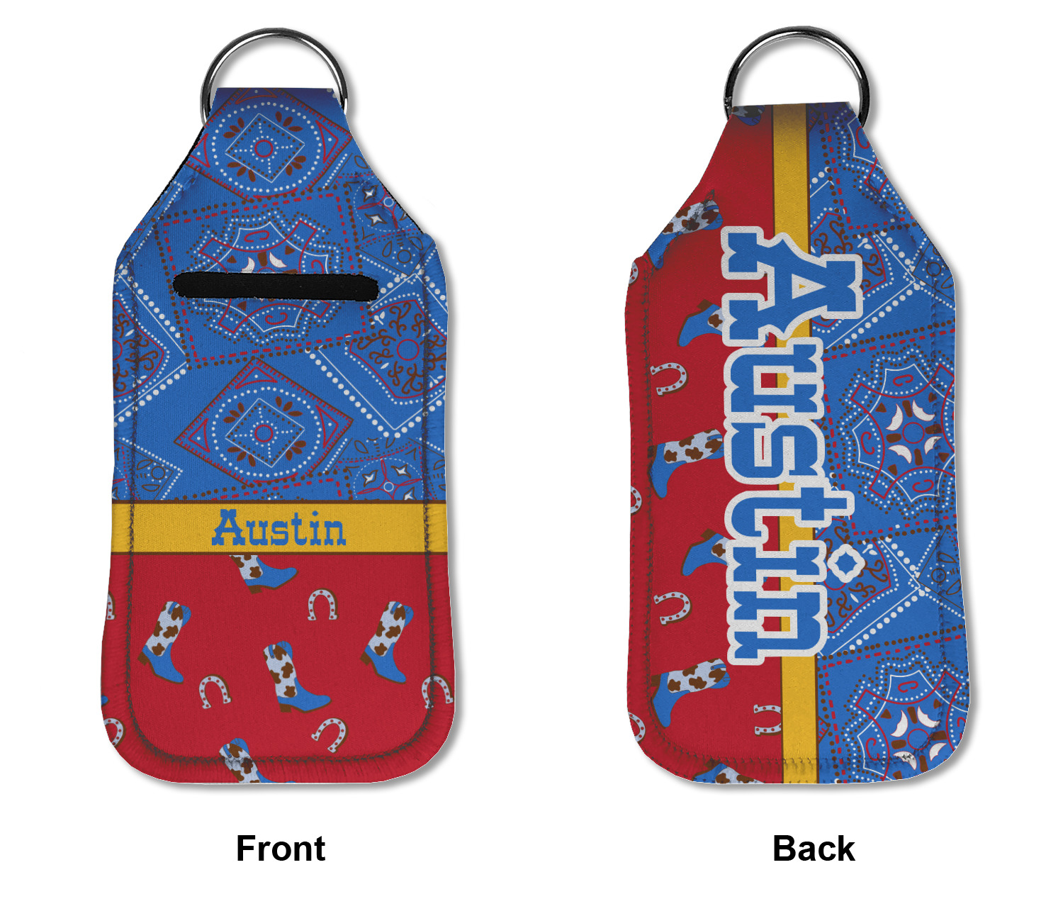 Each hand sanitizer holder comes with its own empty travel-sized, refillable hand sanitizer sure to fit snug in your customized sanitizer case! Our hand sanitizer cases are a durable, yet soft neoprene material sure to last any daily activities or travel agenda. Customize and personalize a hand sanitizer bottle holder with one of our two sizes - small (4.25" x 2.25") or large (5.5" x 2.5"). Each travel sanitizer holder comes with a keyring for attachment on bags, keys, or more!