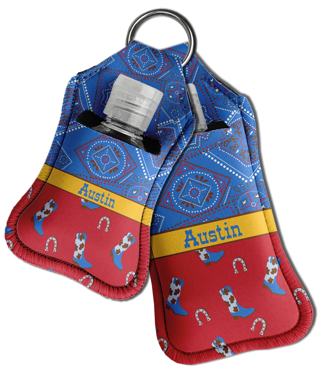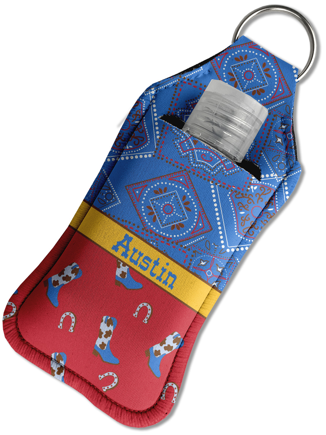 Each hand sanitizer holder comes with its own empty travel-sized, refillable hand sanitizer sure to fit snug in your customized sanitizer case! Our hand sanitizer cases are a durable, yet soft neoprene material sure to last any daily activities or travel agenda. Customize and personalize a hand sanitizer bottle holder with one of our two sizes - small (4.25" x 2.25") or large (5.5" x 2.5"). Each travel sanitizer holder comes with a keyring for attachment on bags, keys, or more!