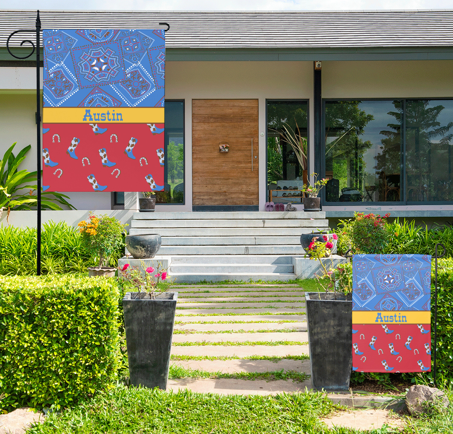 Decorate your front yard or your garden with one of our personalized garden flags! These garden flags will add a splash of color and personalization to any home's greenspace. Customize one with your name, favorite colors, and patterns, as a great addition to your home's exterior! Or, customize multiple seasonal flags and change them throughout the year!