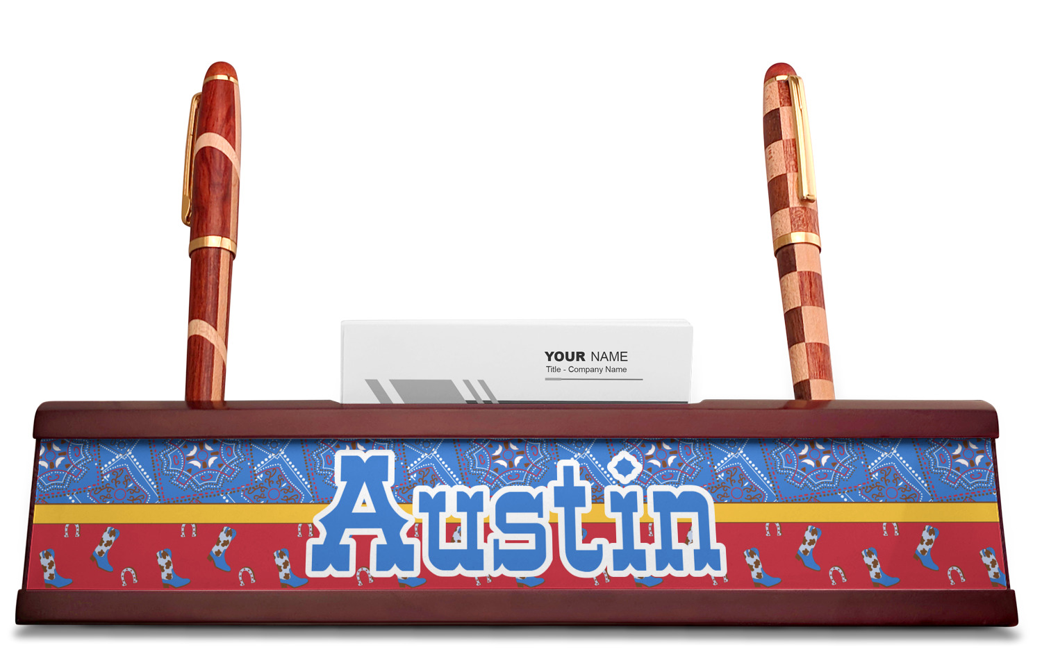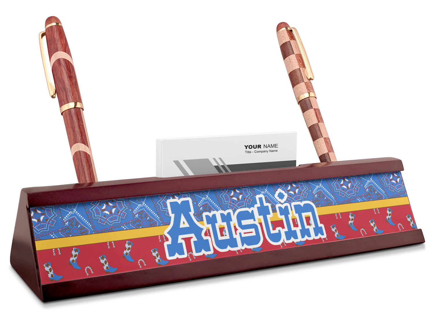 Horseshoe Designs for Red Mahogany Nameplates with Business Card Holder