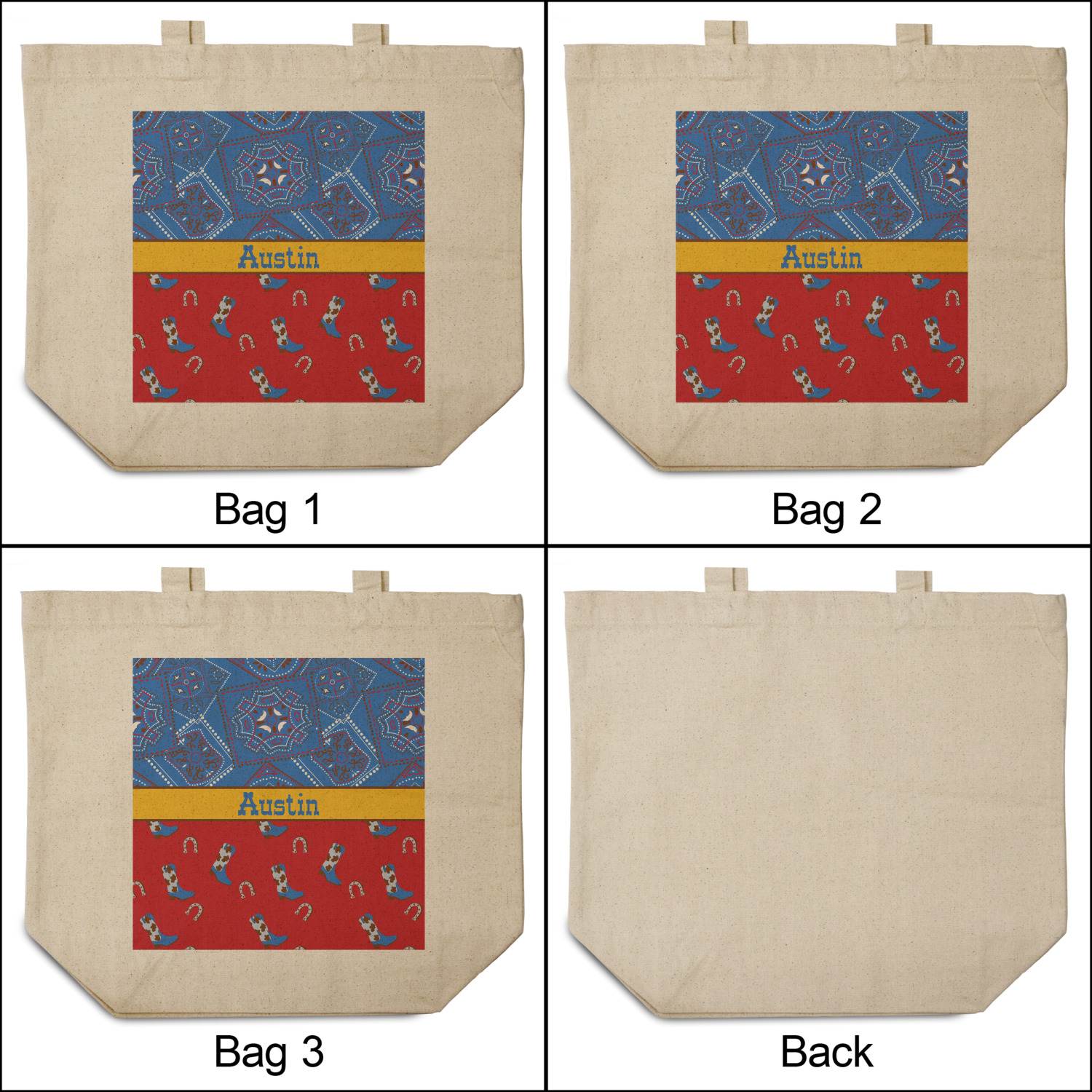 Horseshoe Designs for Reusable Cotton Grocery Bags - Set of 3