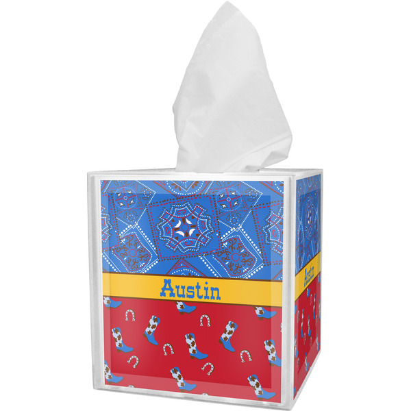 These tissue holders are built from durable acrylic and display your unique personalization on fine-quality vinyl inserts placed within the four sides and top. The box features two pieces, allowing you to easily switch out tissue boxes. On the sides, youll find ridges that ensure the top and base fit securely in place. The bottom of these tissue box holders has four, rubber, non-slip pads to prevent the box from scuffing any surface you decide to display it on. Each box can fit a standard 5 by 5-inch box of tissues.