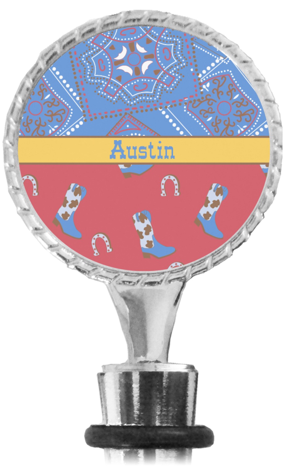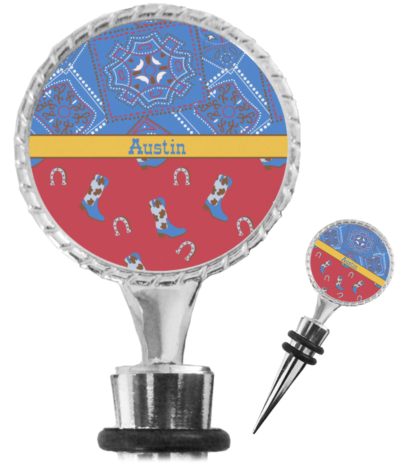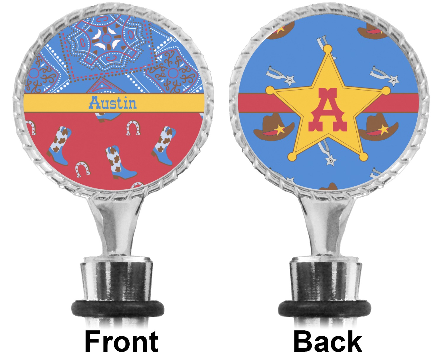 The top part of your bottle stopper is comprised of a zinc ring that displays your customization(s) in its middle, on both sides. The ring is heavy duty, with a bright chrome finish. The body of the wine stoppers have two silicone rings to provide an airtight seal. These wine bottle stoppers measure at 1.625" L x 0.8125" W x 4.625" H; your custom wine stopper is meant to fit into most standard-sized wine bottles.