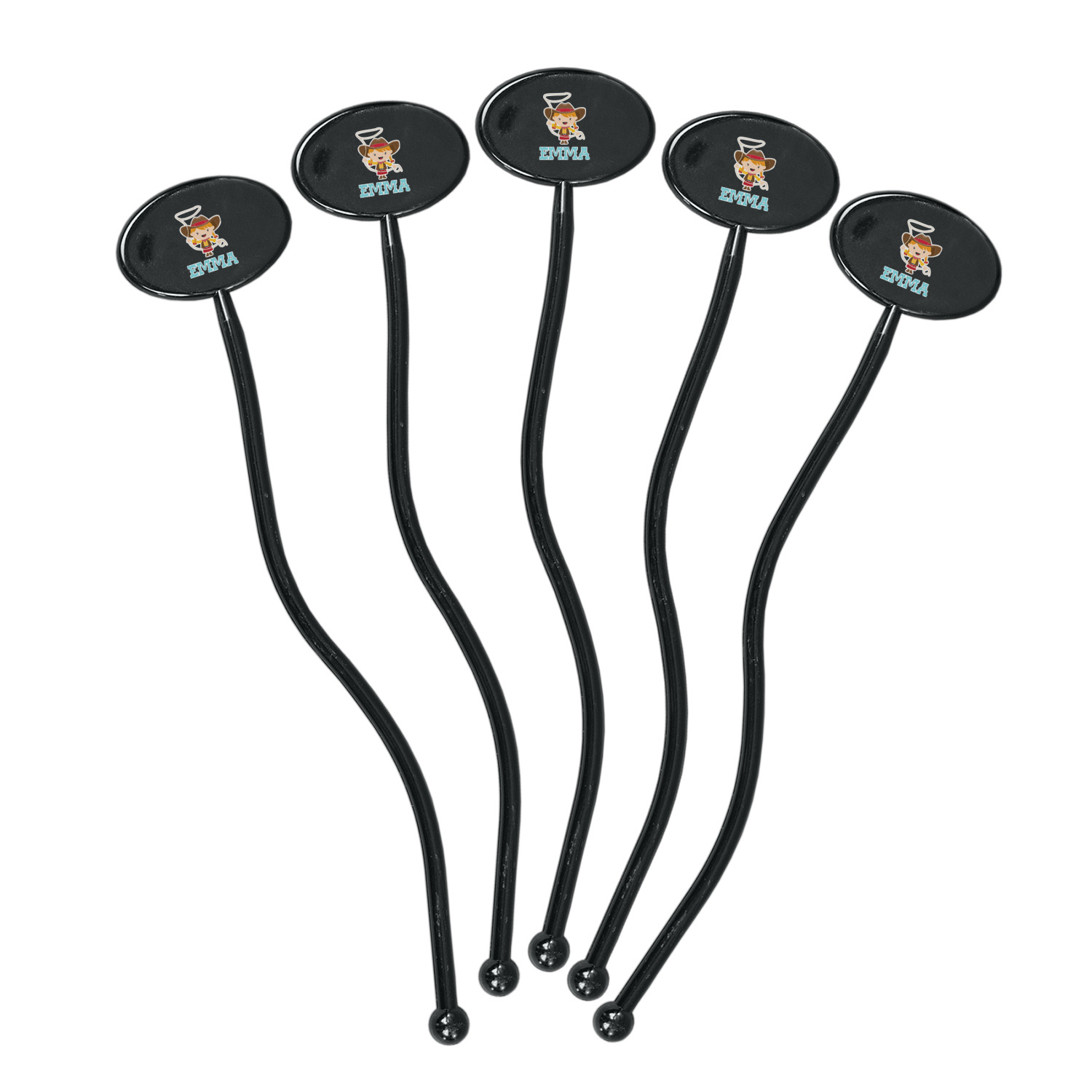 Horseshoe Designs for 7" Oval Plastic Stir Sticks - Black - Single-Sided