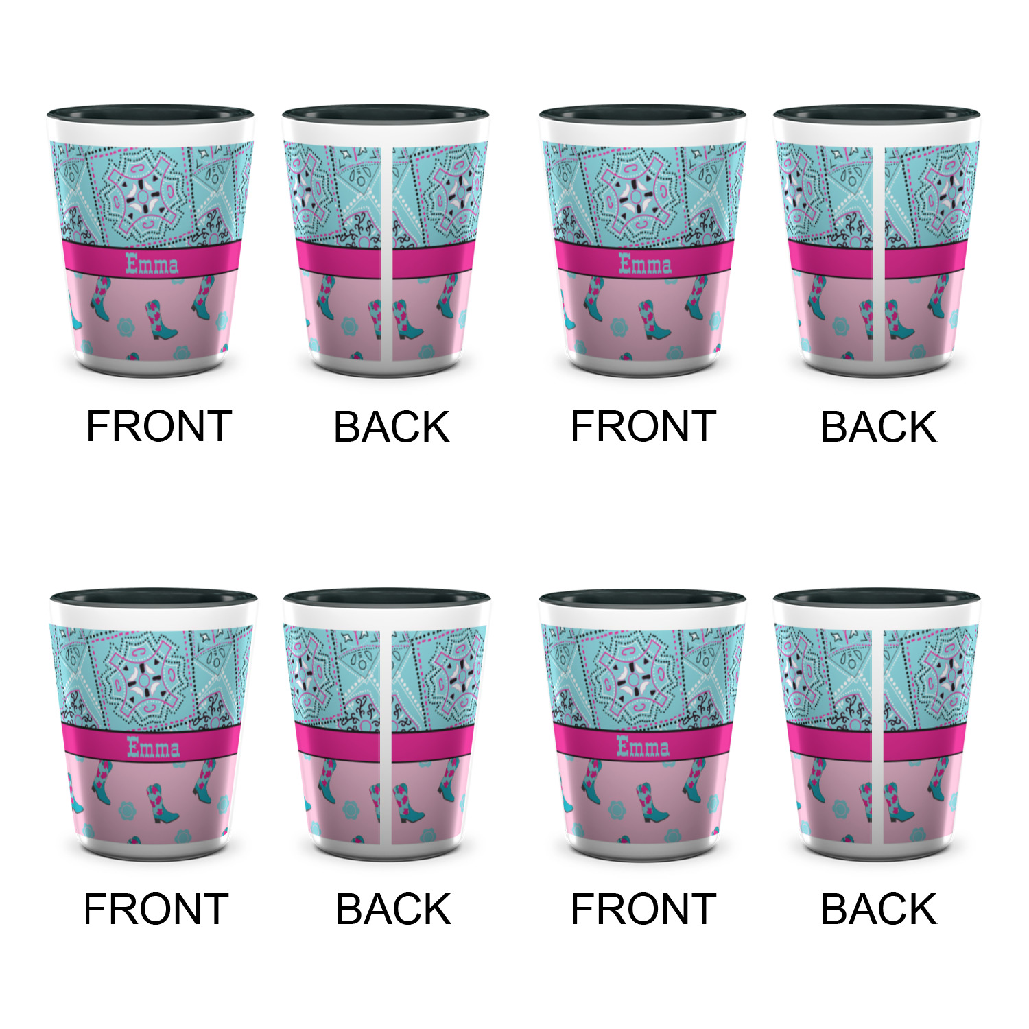 Made from ceramic these shot glasses are printed in full color with the design of your choice. These are a standard 1.5oz size and stand 2.25" tall. Available in a full white ceramic or a two-tone with a black color inside the shot glass. Buy a single or a set of 4, all of which can be designed separately to get you just what you want and need.