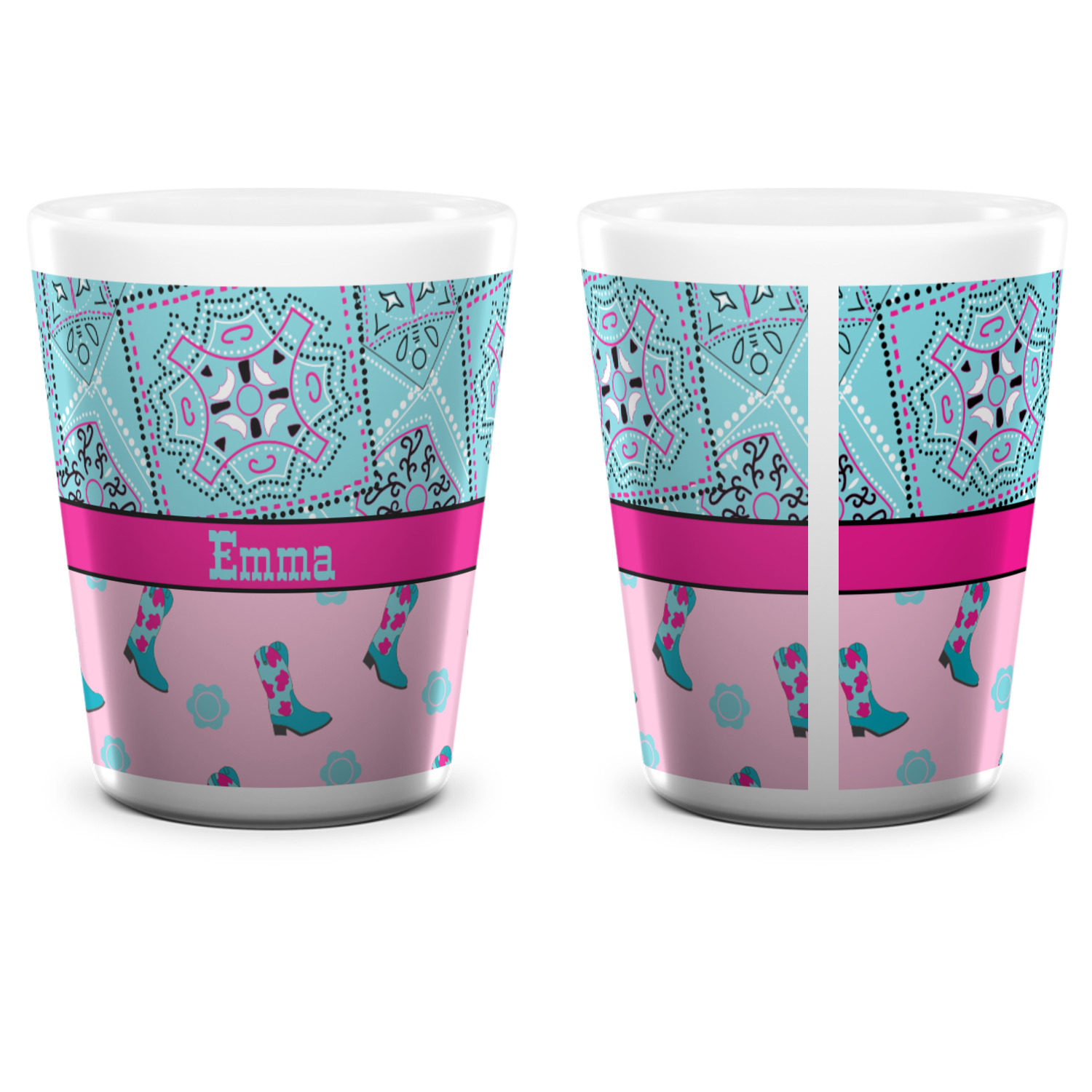 Made from ceramic these shot glasses are printed in full color with the design of your choice. These are a standard 1.5oz size and stand 2.25" tall. Available in a full white ceramic or a two-tone with a black color inside the shot glass. Buy a single or a set of 4, all of which can be designed separately to get you just what you want and need.