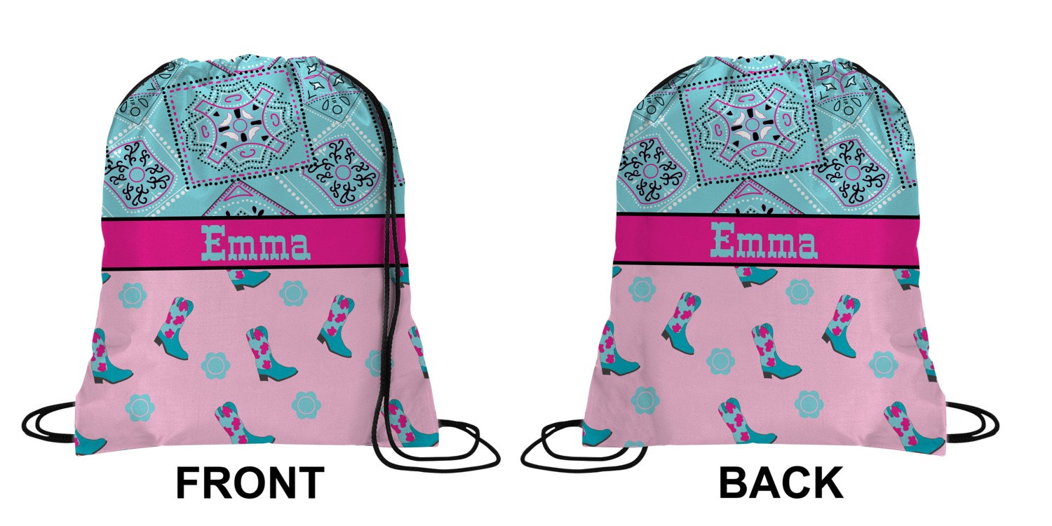 Our drawstring backpacks are custom made for you here in the USA. We offer a great selection of cinch bags and it is your choice to personalize them with the text of your choice, in the format of your choice i.e. monogram, name, initial, name & initial. We offer many different patterns and prints; and many of the patterns are available in 45 different colors.