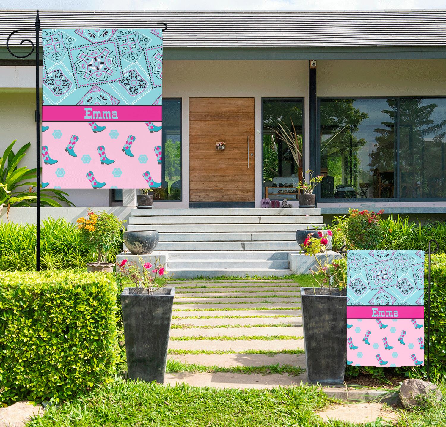 Decorate your front yard or your garden with one of our personalized garden flags! These garden flags will add a splash of color and personalization to any home's greenspace. Customize one with your name, favorite colors, and patterns, as a great addition to your home's exterior! Or, customize multiple seasonal flags and change them throughout the year!