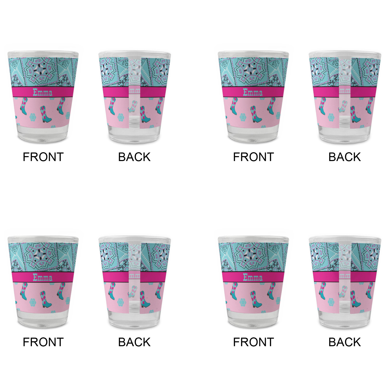 Made with frosted glass, these shot glasses are printed in full color with the design of your choice. They are a standard 1.5oz shot glass and are 2.4" tall. The print is wrapped around the shot glass in a full wrap and boldly displays your customization.