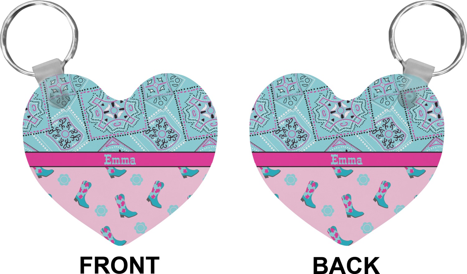 Our personalized keychains attach to the included metal, split key ring with a plastic, removable snap. Since a metal ring is included with your purchase, you have the liberty to keep your keys together on the ring, with or without your unique keychain. We offer this keychain in three different shapes: circle, heart, or diamond. We print your personalized design(s) on both sides of the key chain, and the surface has a glossy, reflective finish that only emphasizes your design. Each keychain is approximately 2.25 by 2.25 inches.