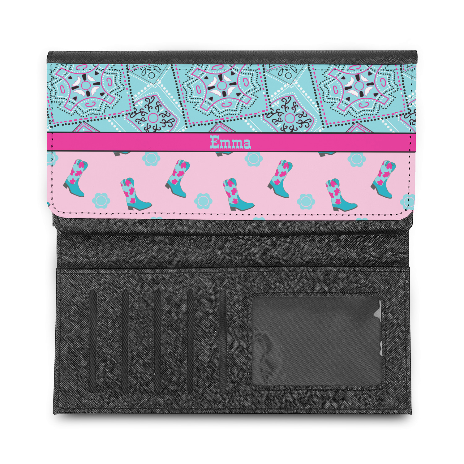 These leatherette ladies wallets can be customized with any one of our patterns (many patterns are available in multiple colors). Of course adding personalization (free) is your choice - you can include a monogram (interlocking is my favorite), a name, or one of our beautiful name and initial combinations.