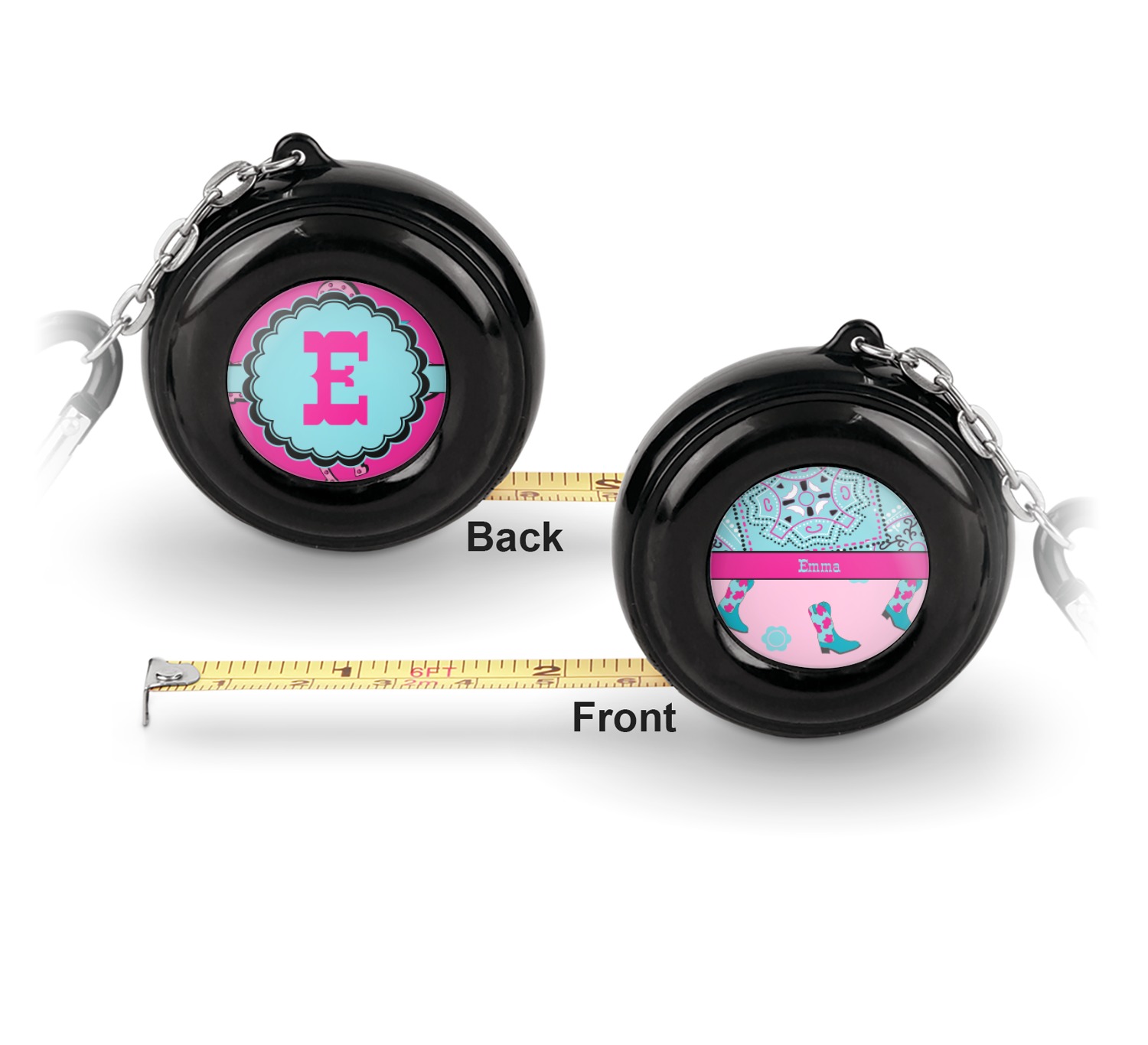 Now for personalizing! You get to personalize both sides of your tape measure. Have fun picking a cute pattern, font, or graphic! Make your personality shine through this fun tool.