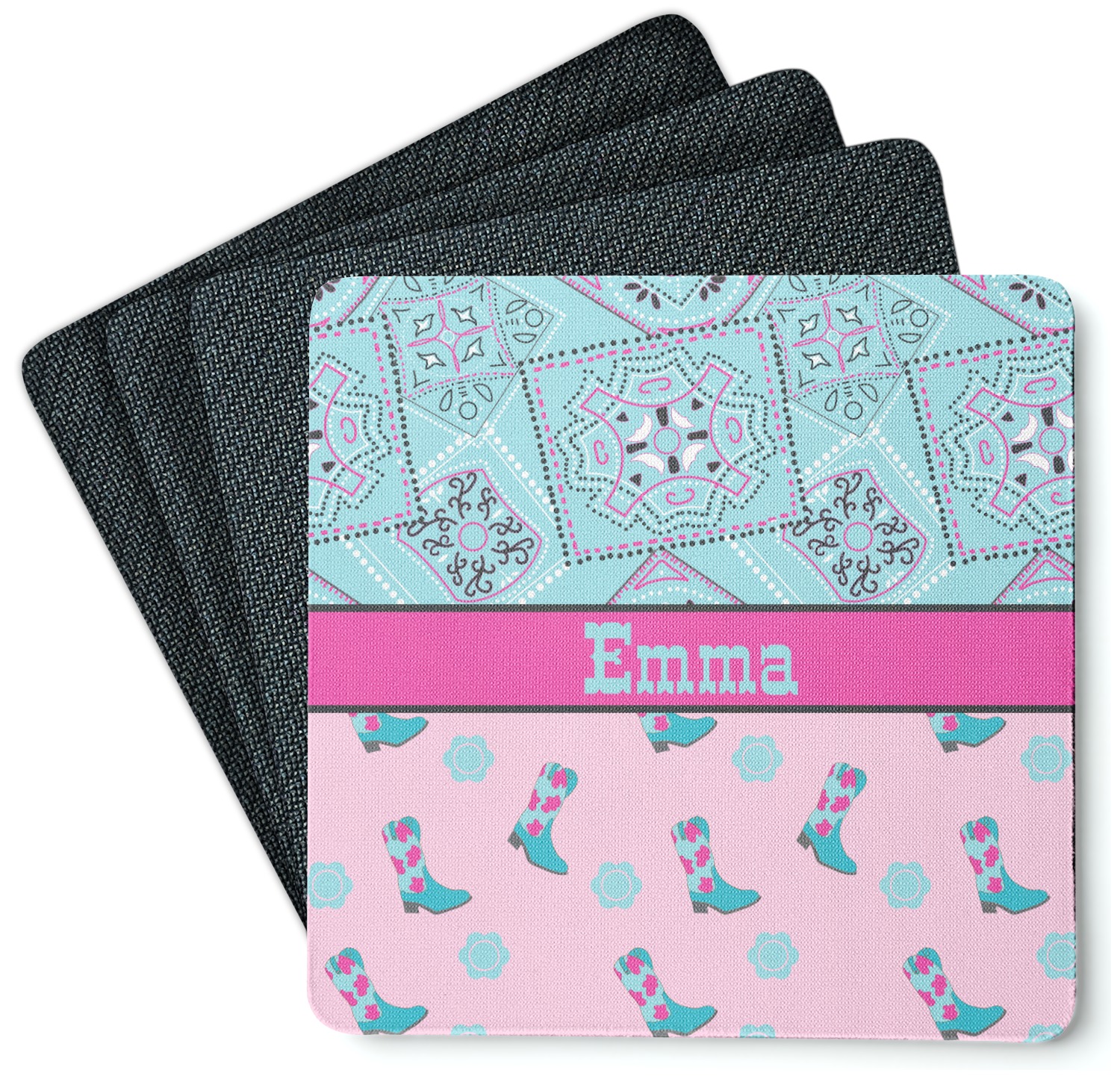 These drink coasters have a smooth, polyester top and a textured, rubber backing on its bottom. The non-slip rubber backing underneath works to keep any spills at bay. At 4 by 4 by 0.25 inches thick, these custom coasters are a suitable size for most drinkware. Your personalization is displayed atop the face of the cup coaster. We sell these rubber coasters in two different shapes: square and round. You can buy each shape as singulars or as a set of 4.
