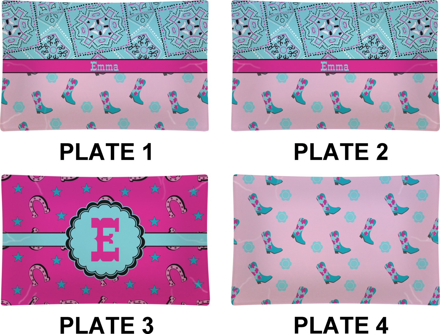 Horseshoe Designs for Glass Rectangular Lunch / Dinner Plates - Set of 4