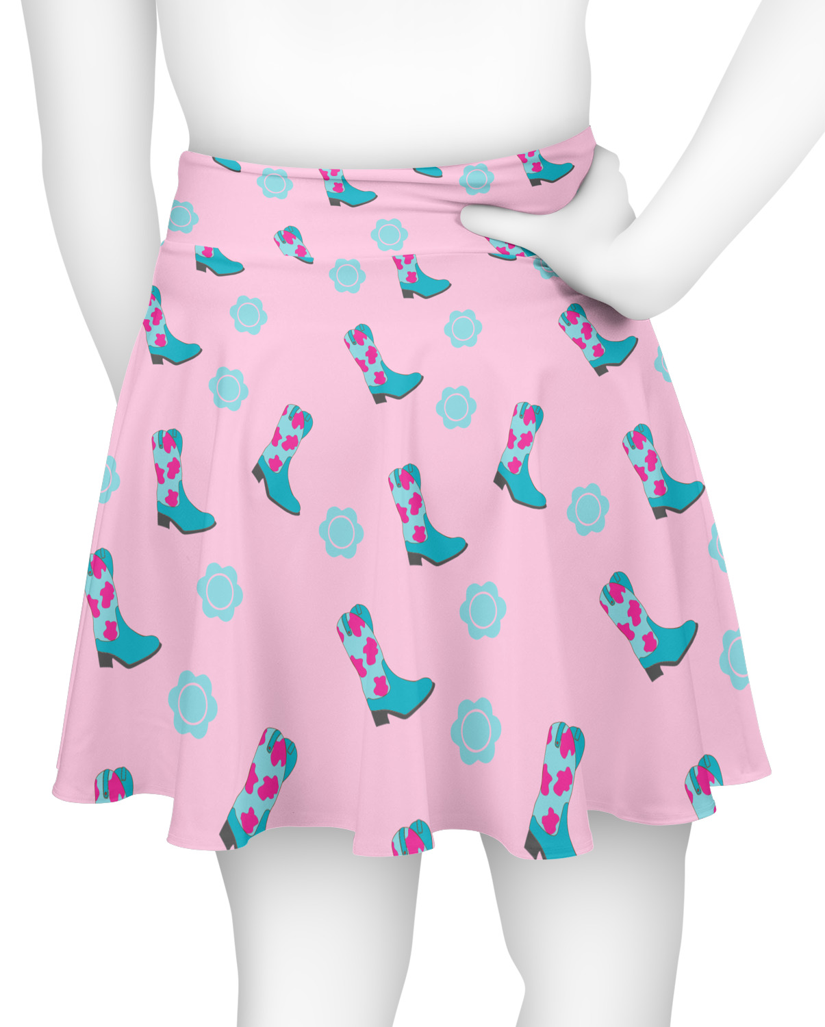This skirt is a fun skater style that flares out (especially if you take a twirl in it!). The waist band is about 4" thick to wear as a high wasted skirt, but can easily be folded down to become a low waisted skirt. The band hugs you tight while the rest of the skirt is very flowy. The material is a comfortable, casual material that has a very slight sheen to it. It comes in 6 different sizes ranging from XS to 2XL. This skirt is perfect as a casual skirt, but can be easily dressed up to be a more formal skirt.