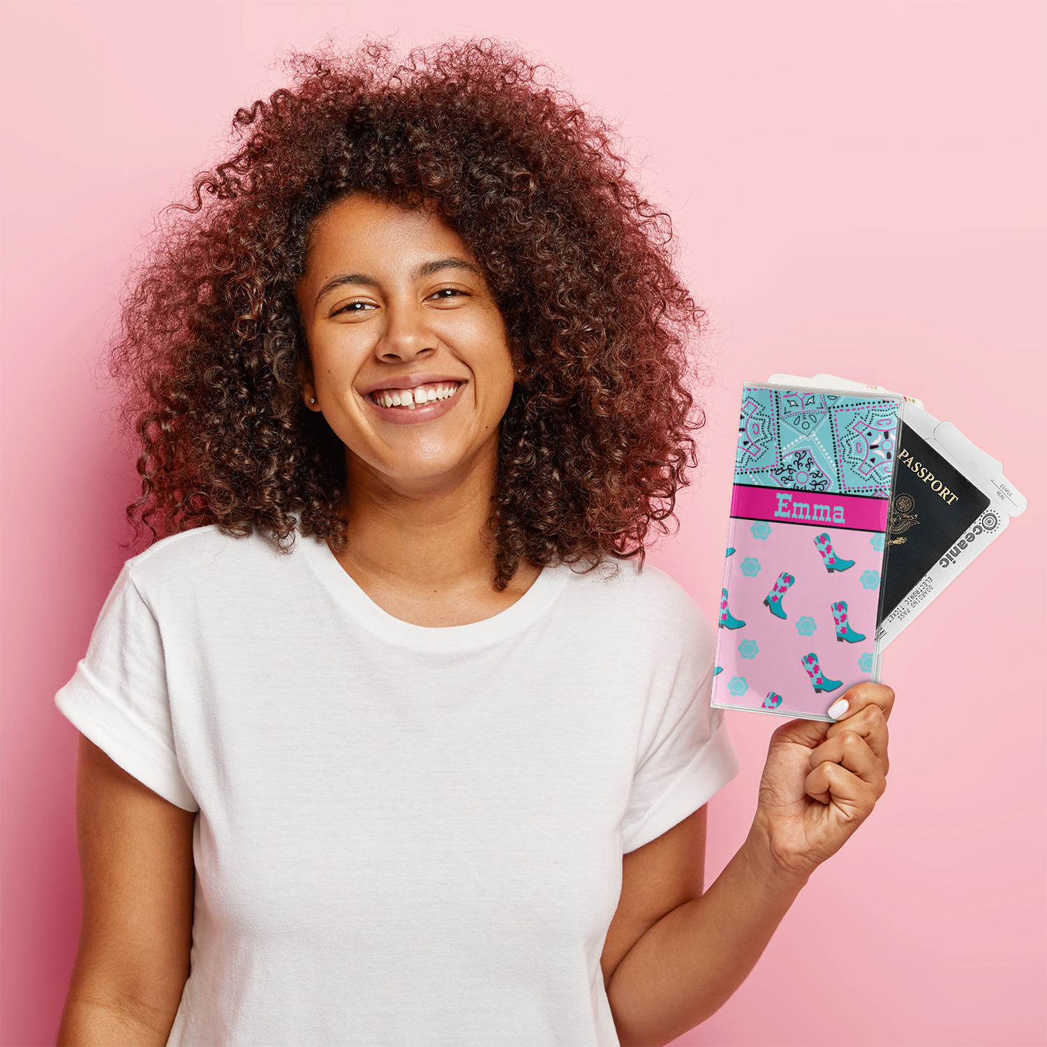 This document holder is really sturdy and has your personalized design inserted right behind all of your nifty pockets, so you can see it on the front and back covers. There are two large pockets and two shorter pockets inside. The larger pockets are tall enough to keep your boarding pass nice and straight. The smaller pockets (on top of the large pockets) are large enough to fit your passport, credit card, or ID.