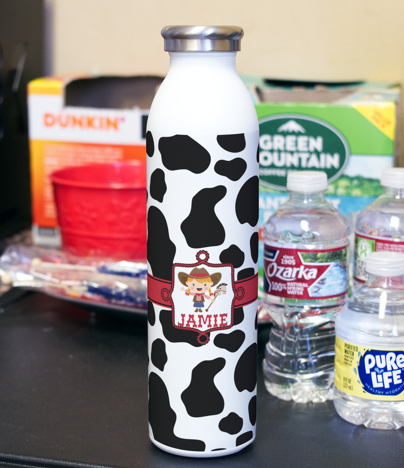 Design your bottle and we will print your design with a UV stable ink so it will not fade over time. After printing the design we apply a clear coat over the print to ensure its durability will stand up to rough every day use.