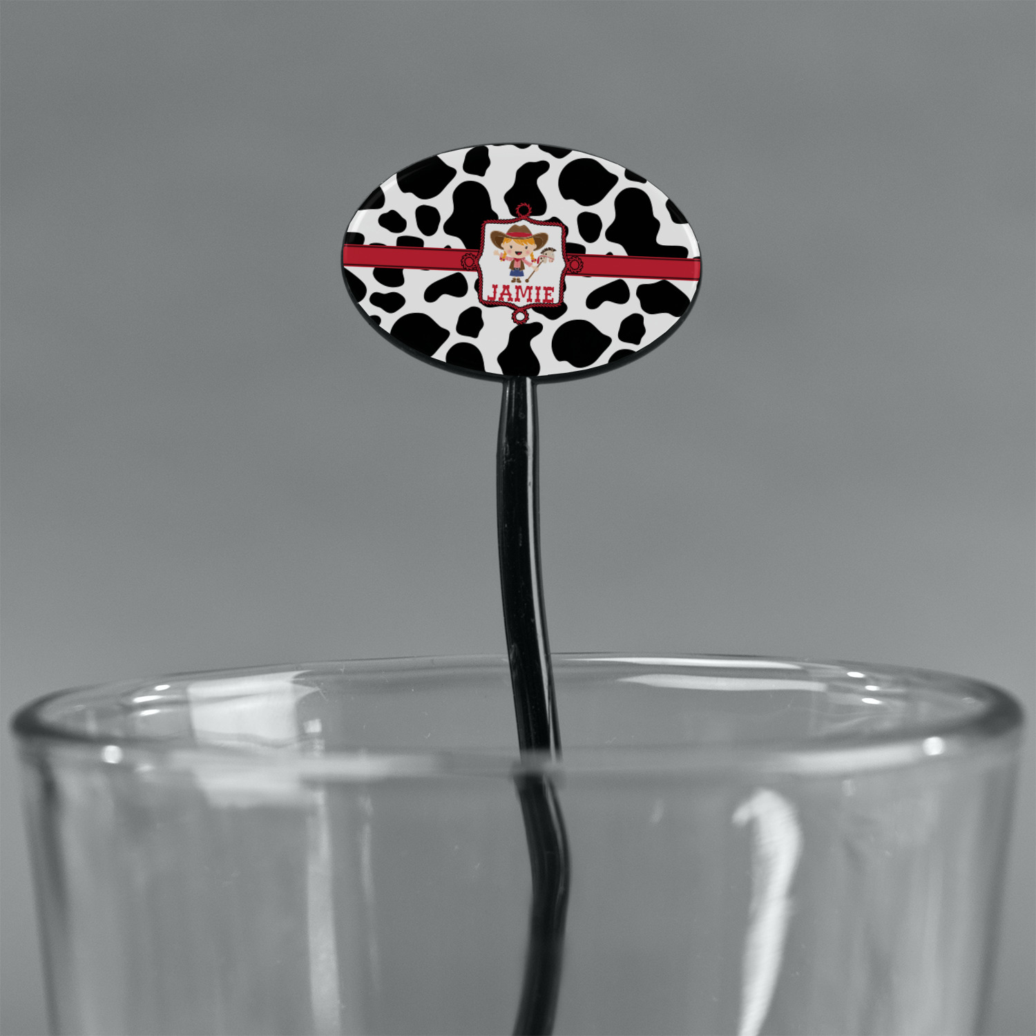 This western themed design is perfect a cowboy or cowgirl. The background is cow print, with a red ribbon in the center. The label is made of rope and you can customize it by choosing a cowgirl or a cowboy.