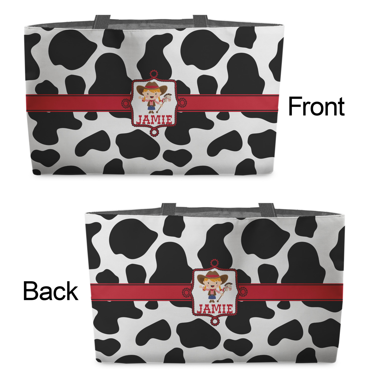 You can design the totes with a design on the front and another one on the back. The two designs can be identical or completely different. The choice is yours.