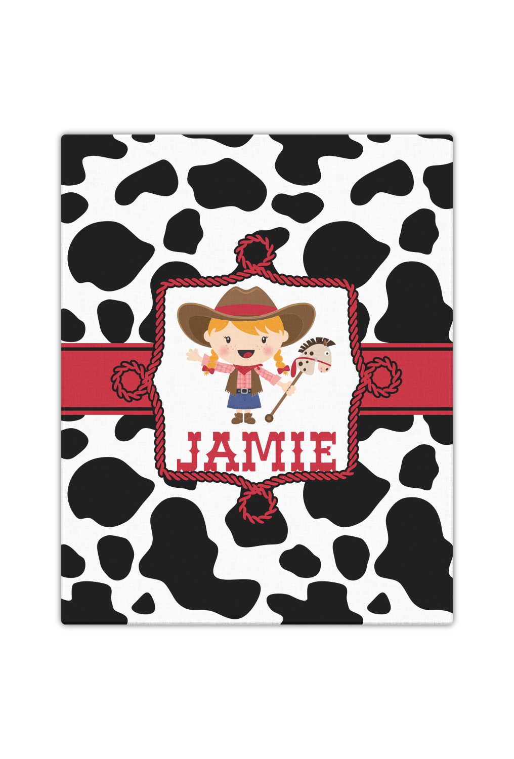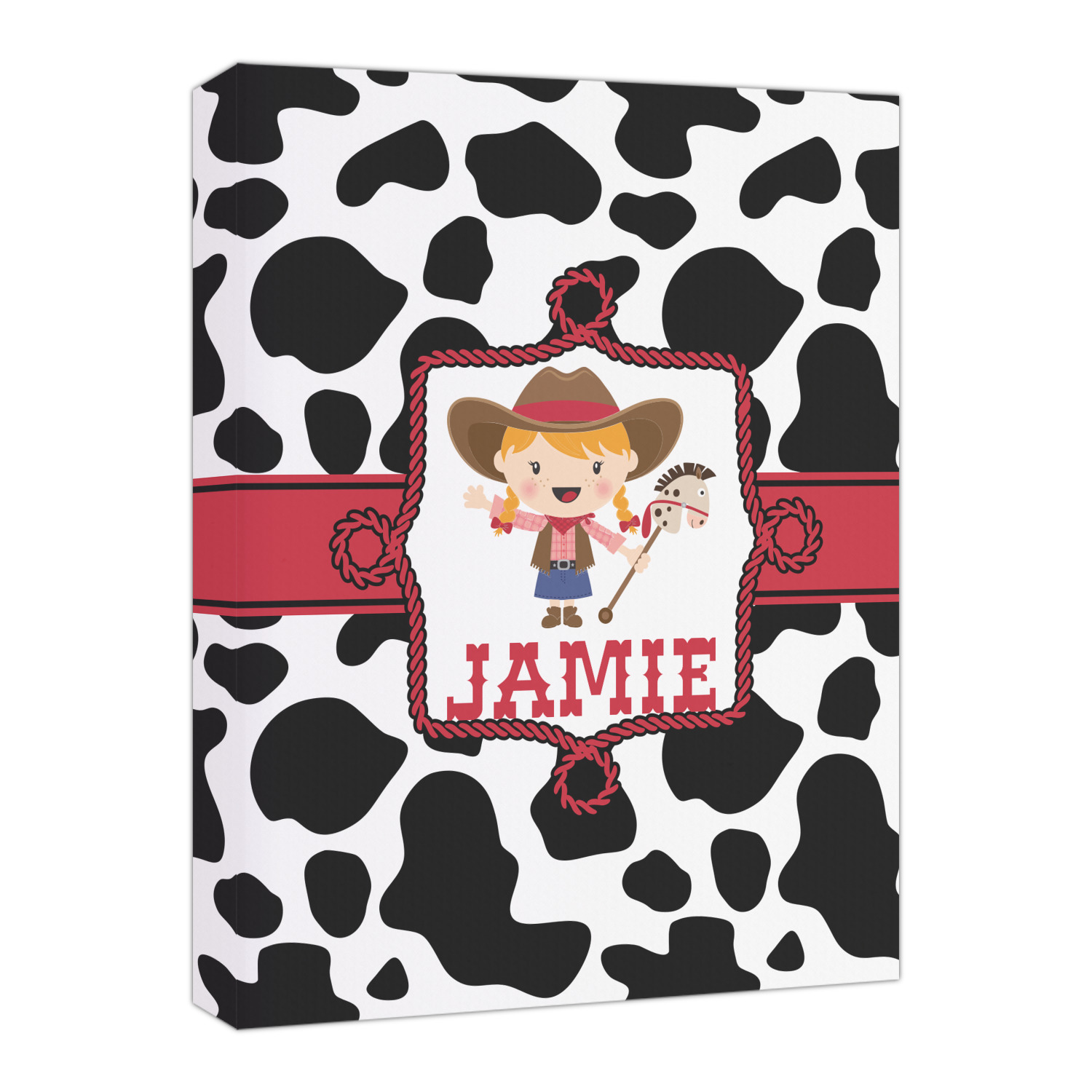 This western themed design is perfect a cowboy or cowgirl. The background is cow print, with a red ribbon in the center. The label is made of rope and you can customize it by choosing a cowgirl or a cowboy.